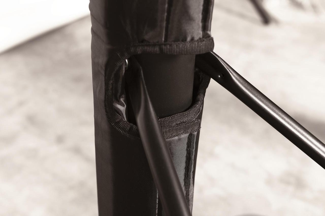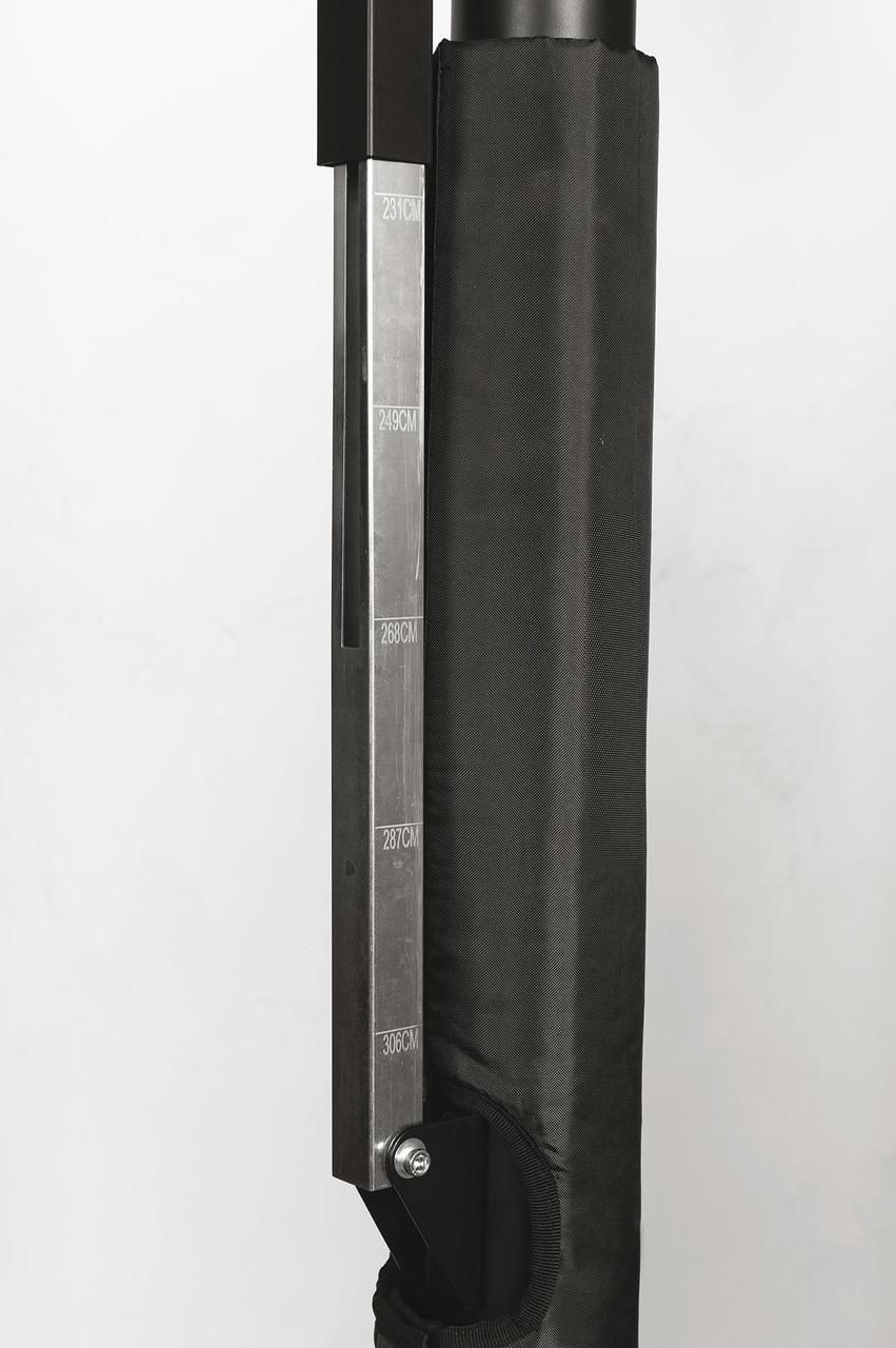 Вертикальная конструкция с регулируемой высотой, со стальной телескопической труби Ø60 мм и армирующих креплений, покрытая порошковой краской черного цвета.