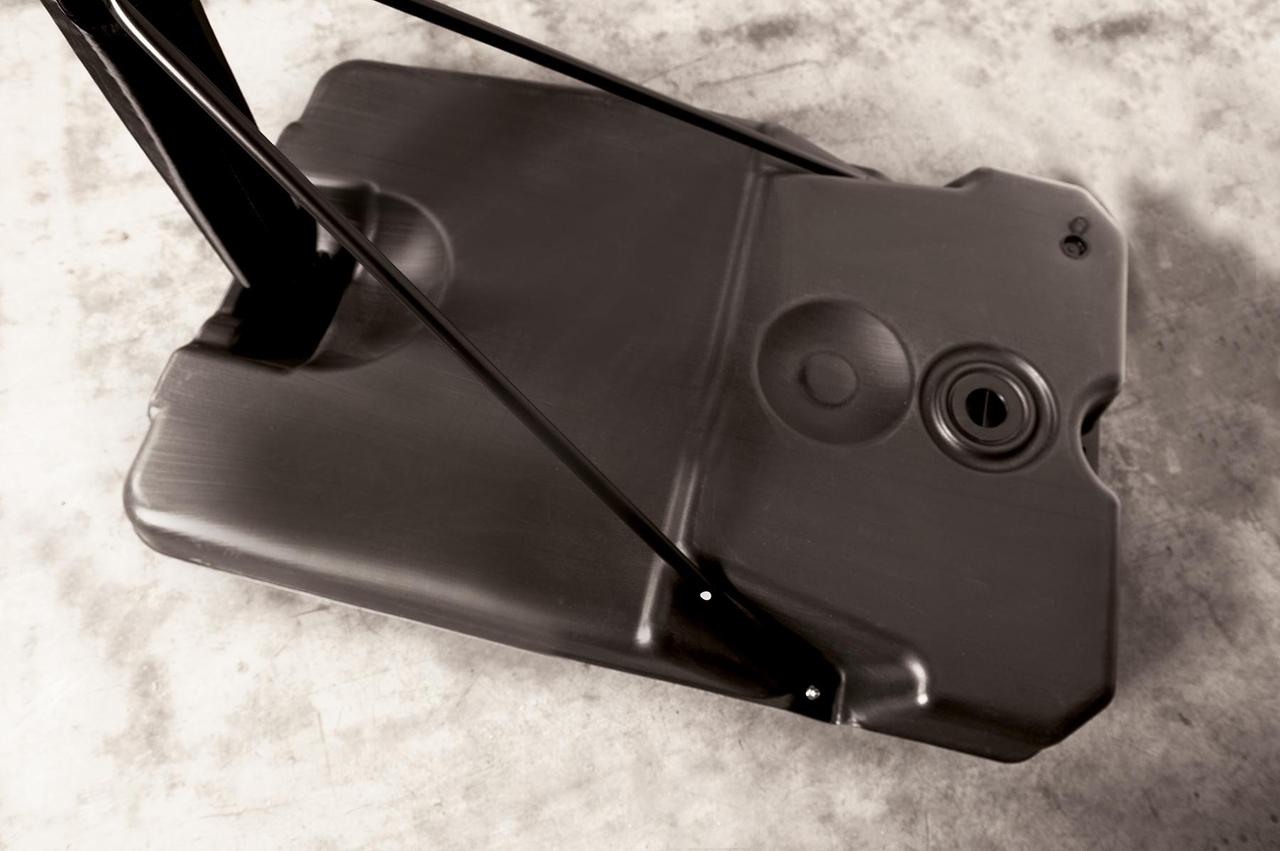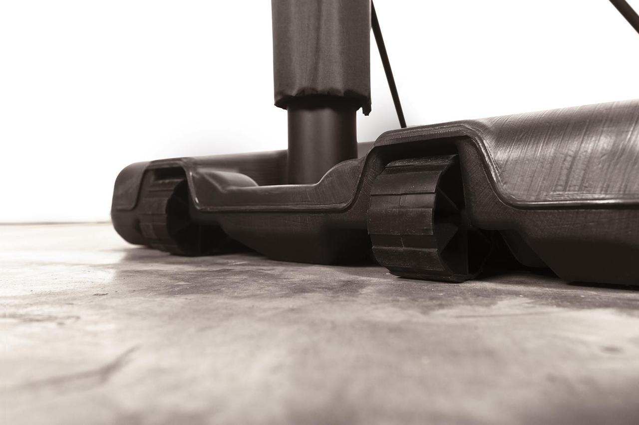 Основа из черного формованного полиэтилена, оснащена колесами спереди, ее можно наполнить водой для обеспечения устойчивости во время игры.