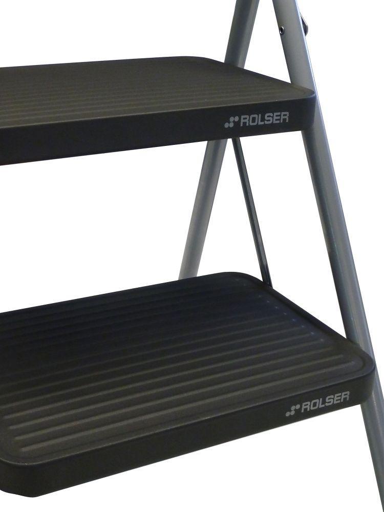 Драбина Rolser Taburete M/10 UNE 2 щаблі Antracita (MET003-1021) - надійний помічник в домашньому господарстві. Дана модель має два широкі щаблі з протиковзним покриттям. Конструкція обладнана захистом від випадкового складання та розрахована на максимальне навантаження до 150 кг. Опорні ніжки з пластиковими накладками для більшої стійкості на слизьких поверхнях. Драбина сертифікована відповідно до європейського стандарту якості UNE EN-14183.