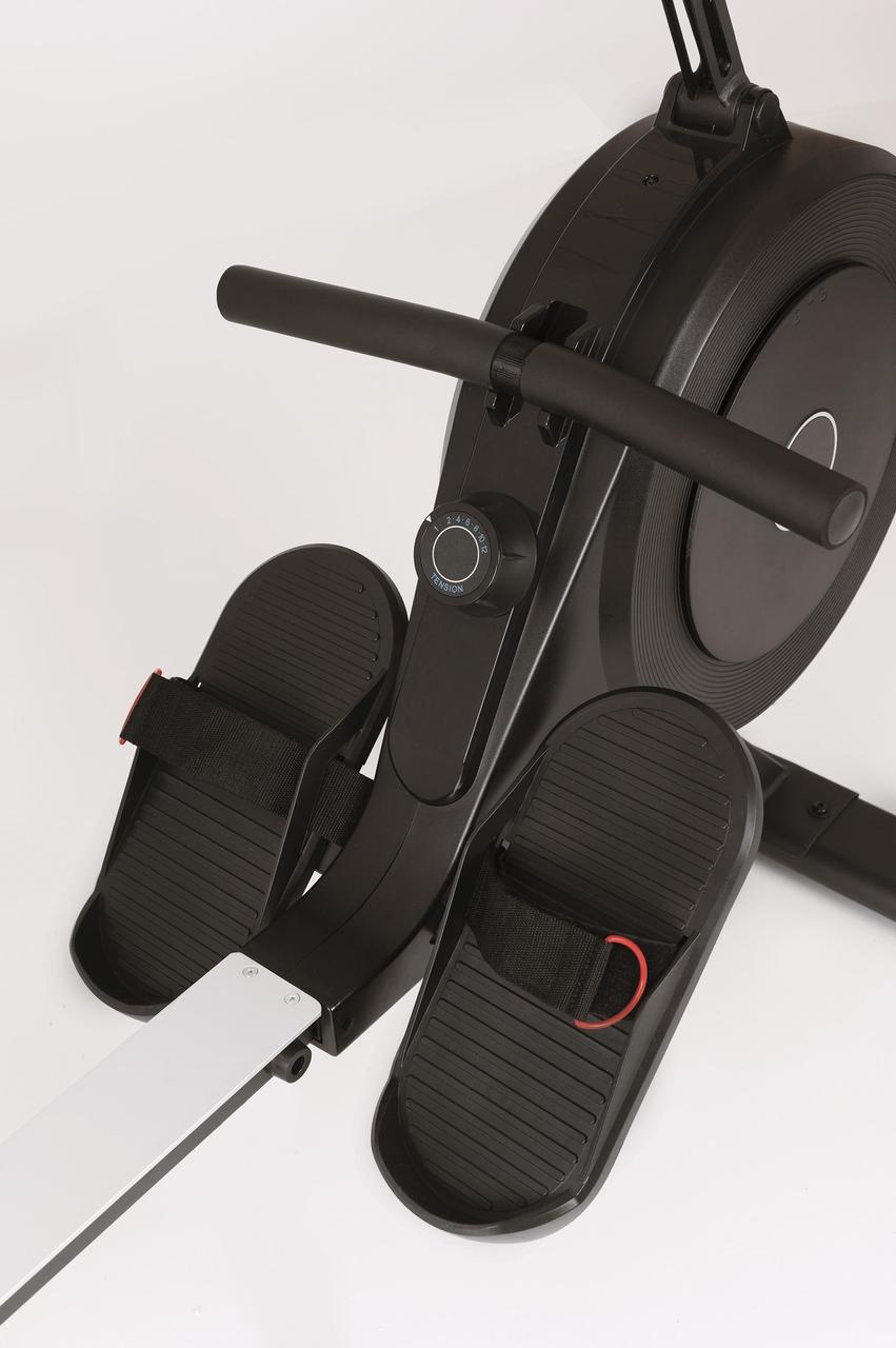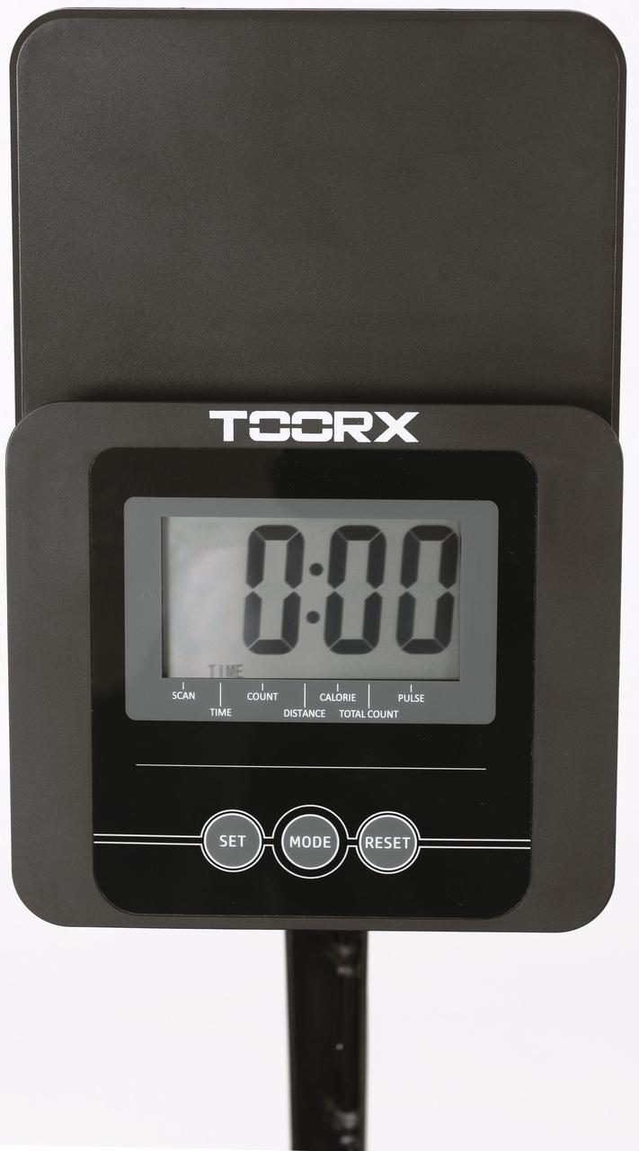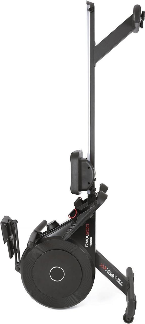 Гребний тренажер Toorx Rower RWX 200 (RWX-200) від італійського виробника Garlando S.p.A. призначений для комплексного кардіотренування в домашніх умовах. Тренажер має 12-рівневе ручне регулювання навантаження, а також простий у використанні комп'ютер. 5-кілограмовий маховик завдяки магнітній системі гальмування забезпечує оптимальну амплітуду рухів, а повітряна система опору імітує відчуття веслування на воді. Гребний тренажер розрахований на вагу до 120 кг, а його сидіння на роликах ковзає по алюмінієвій напрямній, гарантуючи необхідний комфорт навіть за тривалих вправ. Вбудований приймач для бездротового датчика вимірювання пульсу буде доречним під час тренування для контролю частоти серцевих скорочень. Складана конструкція тренажера заощаджує місце та дозволяє розмістити його навіть на мінімальній площі, яка потрібна для занять спортом.