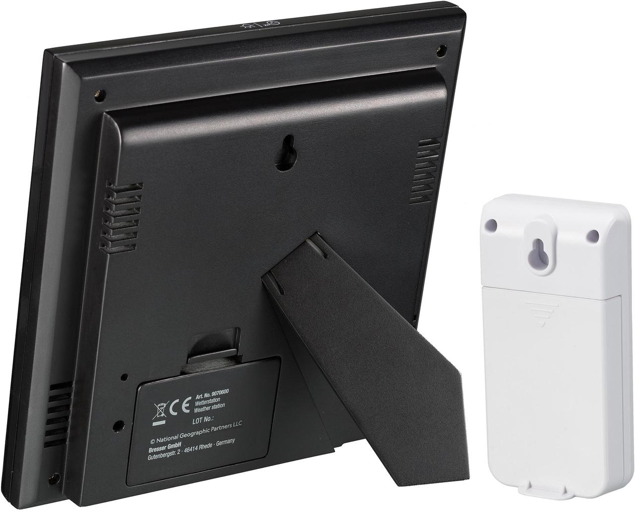 Метеостанція National Geographic VA Colour (Black) (9070600) завдяки кольоровому дисплею LCD та зовнішньому датчику показує вам всю важливу інформацію про погоду. На дисплеї виводиться не лише інформація про внутрішню та зовнішню температуру та вологість, але й точний час DCF, який отримується за допомогою радіочастотного передавача. Також відображається поточний день тижня і дата.