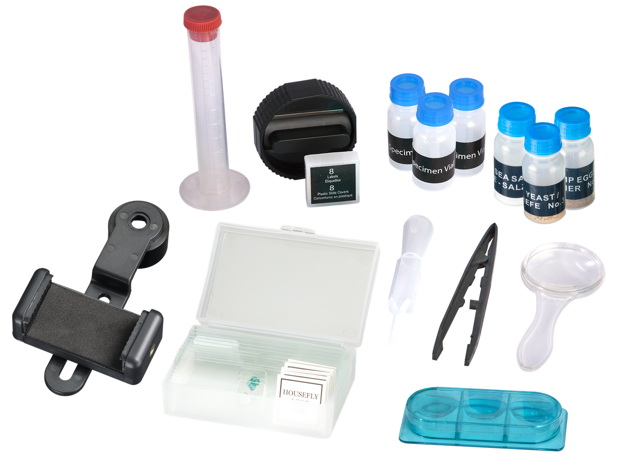 National Geographic 40x-640x (с адаптером для смартфона) является современным микроскопом для детского развития. Микроскоп укомплектован большим количеством разнообразных аксессуаров, готовых слайдов для просмотра, оснащен револьверной головкой с тремя объективами, позволяющими в комплексе с зум-окуляром увеличения до 640х. Отличительной особенностью данного микроскопа является адаптер для камери смартфона. С помощью адаптера для смартфона, идущего в комплекте с микроскопом, легко фотографировать объекты наблюдений на камеру вашего смартфона.