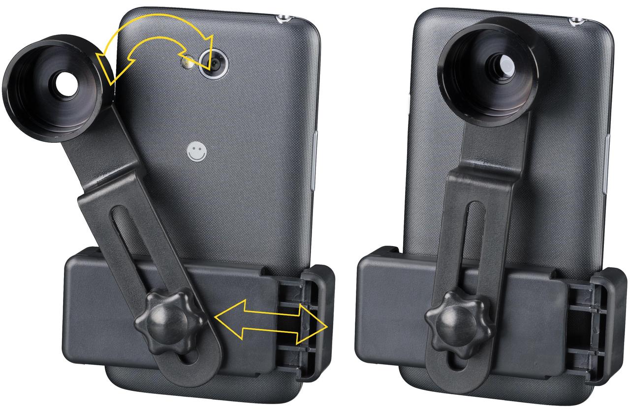 В комплектацию входит адаптер камери смартфона. Адаптер крепится на тубусе микроскопа и позволяет проводить фото и видеосъемку основной камерой смартфона независимо от ее местонахождения. Новый смартфон-адаптер теперь позволяет надежно закрепить смартфон независимо от того, есть ли тыльная поверхность гаджета гладкой или рифленой.
