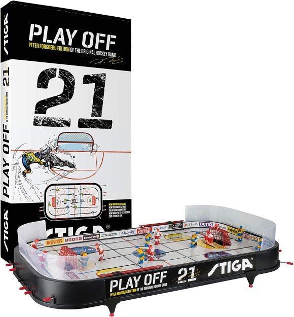 Легендарні матчі не повинні забуватися. Їх можна відтворювати за допомогою настільного хокею Stiga. Хокей Stiga Play Off був випущений в 1983 році і після цього в його дизайні практично нічого не змінювалося. Через багато років, легендарна компанія Stiga випустила настільний хокей нового покоління з новою легендою – Пітером Форсбергом (Peter Mattias Forsberg). Форсберг – легендарний шведський хокеїст, в діях якого практично не було слабких місць. Він вважається одним з найвидатніших гравців усіх часів. Номер Пітера Форсберга в команді – 21. Так що назвою оновлена версія настільного хокею Стіга, зобов’язана йому. Він також став обличчям оновленої моделі хокею. Завдяки серії поліпшень і сучасному дизайну класичний Play Off робить крок у 21 століття.