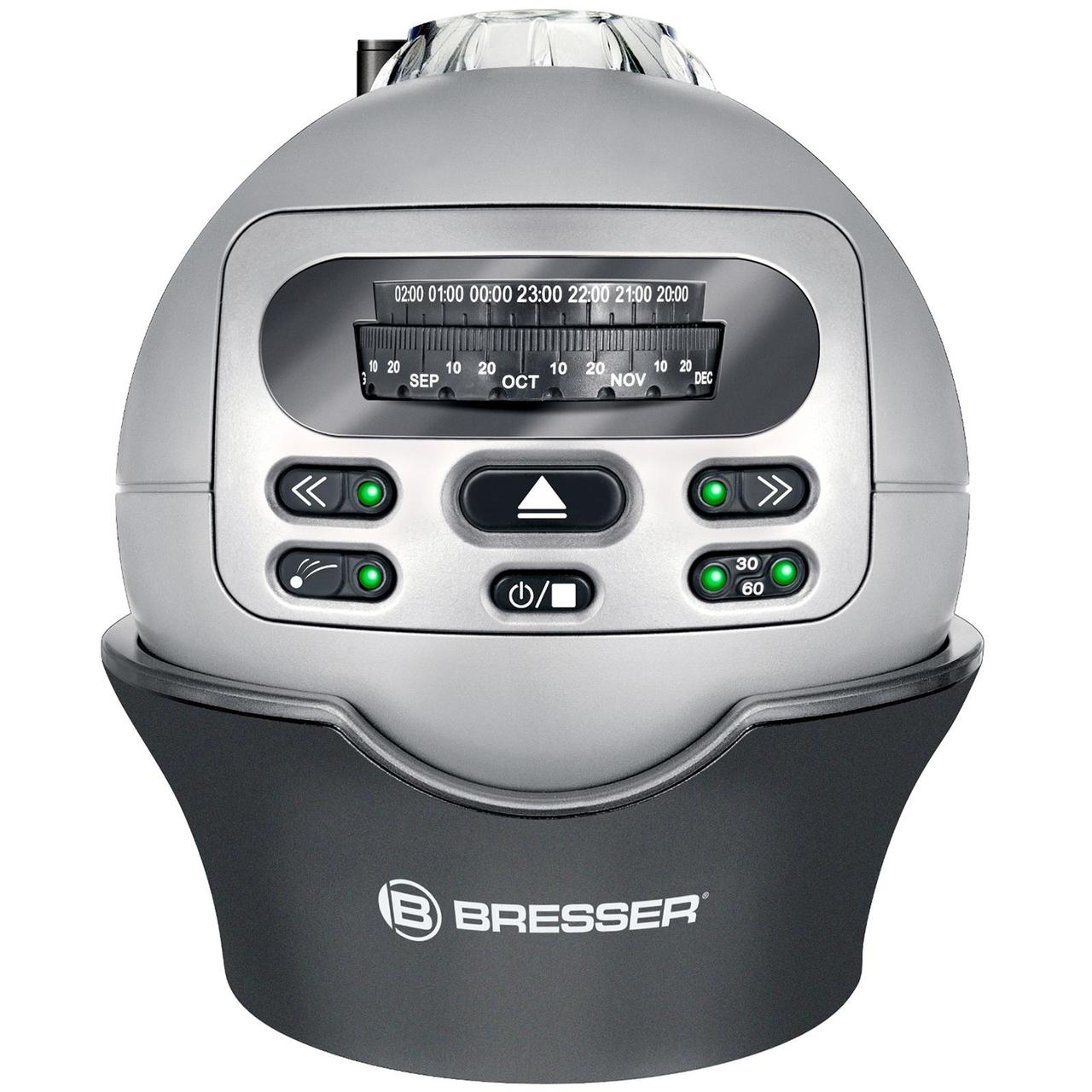 Торгова марка Bresser представляє широкий вибір традиційно якісних оптичних приладів будь-якої складності і для будь-якого віку. Сьогодні, живучи у великому місті, важко відволіктися та глянути у глибоке, загадкове нічне зоряне небо. Та й не завжди воно настільки прозоре та чисте, щоб побачити тисячі зірок та десятки сузір'їв. Планетарій Bresser Junior Deluxe дозволить Вам та Вашій дитині насолоджуватися красою нічного всесвіту, не виходячи з квартири. Просто вкажіть бажану дату, час перегляду, спрямуйте планетарій на стелю і він перетворить його на зоряне небо. Два вбудовані мотори створюють ефект падаючих зірок і здійснюють поворот проекції на площині. Потужне люмінесцентне підсвічування зробить проекцію яскравою та красивою. Дуже важливо, що планетарій сконструйований таким чином, щоб зробити його максимально безпечним для дитини. Ви зможете використовувати його у будь-якому місці, де є гладка поверхня для проекції, оскільки робота приладу не залежить від електромережі. За допомогою вбудованого таймера можна настроїти автоматичне вимкнення приладу через 30, 60 або 120 хв. Немає нічого простішого та цікавішого, ніж розповісти дитині про супутників та сузір'їв за допомогою Bresser Junior Deluxe. Можна не сумніватися, що подорож по просторах космосу стане цікавою і незабутньою не тільки для Вашої дитини, але і для Вас.