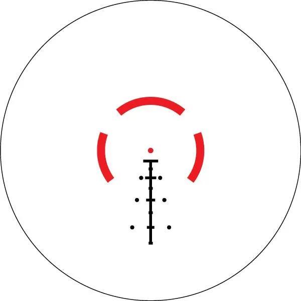 Даний тип сітки створений для максимально ефективного використання патрона 5.56 у вашій AR гвинтівці, забезпечуючи як швидке виявлення цілі, так і градуйовану шкалу ялинку для внесення поправок по горизонту на дистанції до 650 ярдів.