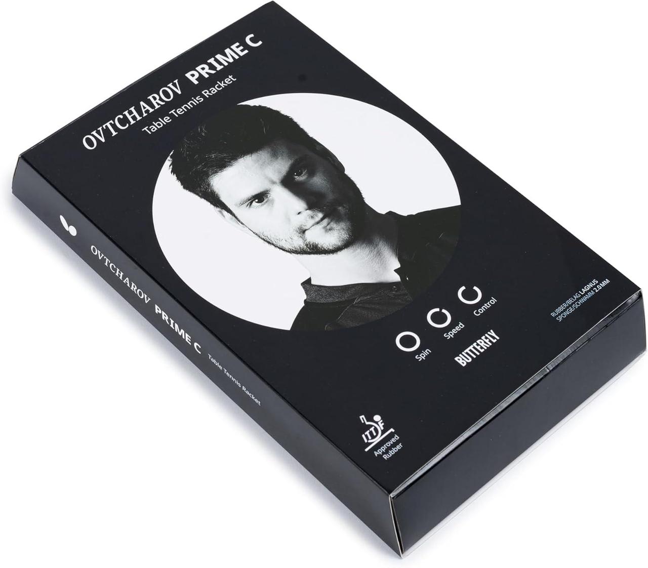 Ракетка для настільного тенісу Butterfly Ovtcharov Prime Carbon розроблена для безкомпромісної, сучасної атакувальної гри. Вона оснащена з обох боків гумою Lagnus, схваленою ITTF. Окрім високої базової швидкості, гума характеризується вираженим зчепленням, що дозволяє гравцеві прискорити обертання під час ударів. Серцем ракетки Ovtcharov Prime C є два карбонові шари. Завдяки високої твердості, карбонові шари збільшують швидкість ракетки, а також забезпечують більш рівномірний відскок м'яча, що полегшує контроль ударів. Це робить Butterfly Ovtcharov Prime C ідеальним вибором для амбітних спортсменів з високими вимогами до свого спорядження.