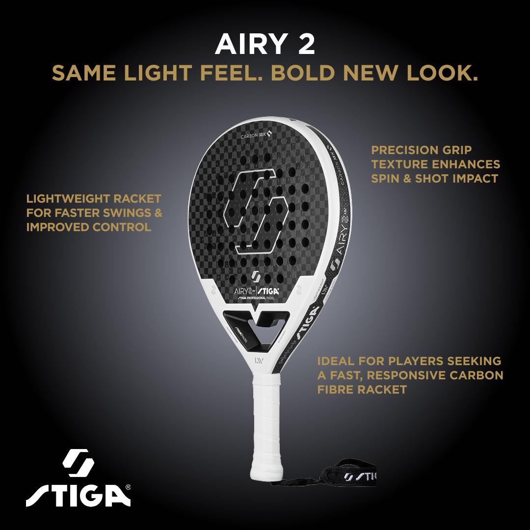 Ракетка для падел тенісу Stiga Racket AIRY 2 наступниця нашої популярної легкої ракетки Stiga Racket AIRY яка створена для швидкості, відчуття м'яча та контролю – з мінімальним навантаженням на лікоть та зап'ястя.