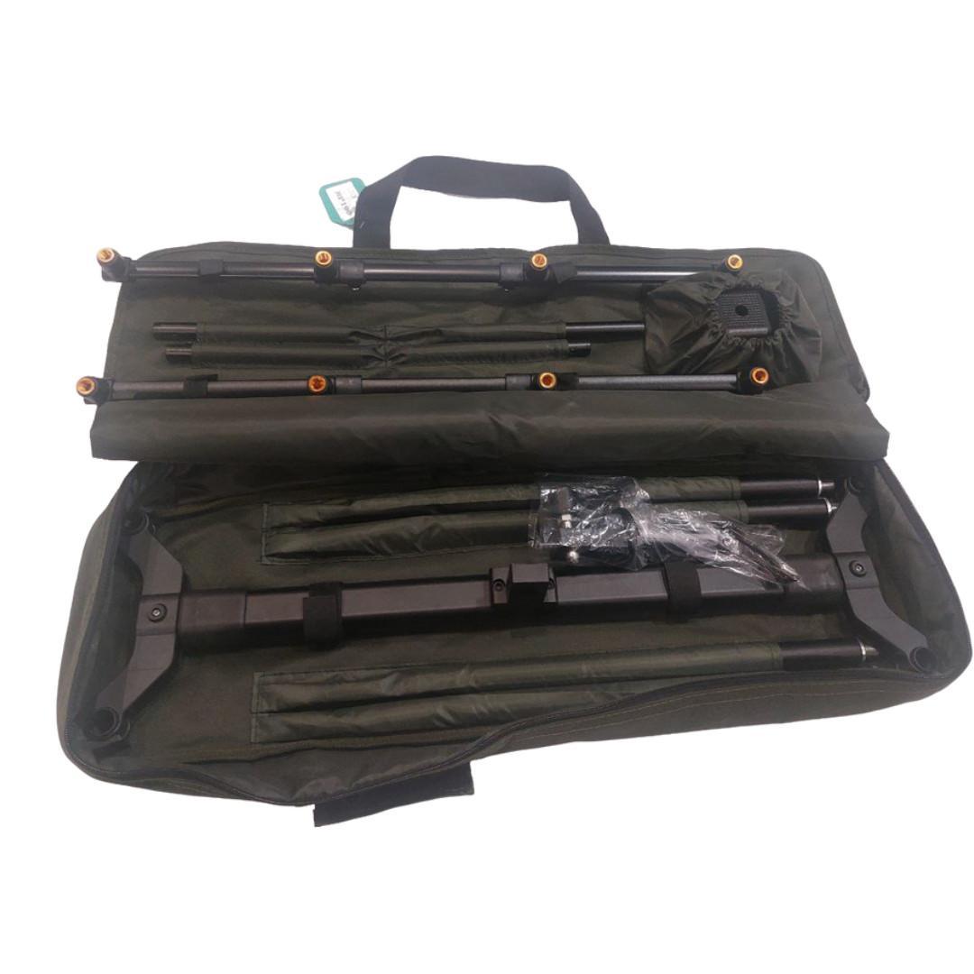 GLADIATOR 153 вирізняється витривалістю, стійкістю до погодних впливів і продуманими деталями, які підвищують комфорт під час використання. Виготовлений із високоякісних матеріалів, род-под здатен витримати навантаження навіть у складних умовах експлуатації. Телескопічні ніжки з труб діаметром 25 мм забезпечують чудову адаптацію до будь-якої місцевості — будь то пісок, трава, гравій чи глина. Висота ніжок регулюється до 63 см, що дозволяє індивідуально налаштувати підставку. Крім того, подовження рами можливе у двох напрямках, а завдяки спеціальному регулятору ви зможете встановити потрібний кут нахилу. Модель оснащена надійними тримачами для вудилищ, які забезпечують їх стабільне положення й захист. У складеному вигляді род-под займає мінімум місця, що зручно для зберігання й транспортування. Зручний чохол із роздільними секціями для кожного елемента гарантує безпечне перевезення всього комплекту. Матеріал рами: нержавіюча сталь з порошковим покриттям, труби діаметром 25х25 та 22х22 мм Можливість регулювати довжину основної рами від 71,5 до 109 см.
