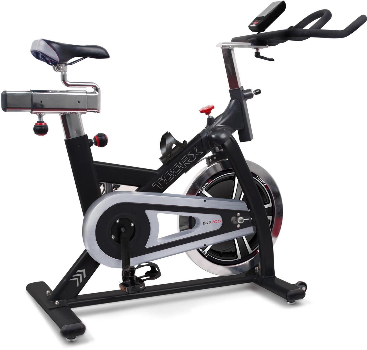 Сайкл-тренажер Toorx Indoor Cycle SRX 70S (SRX-70S) від італійського виробника Garlando S.p.A. призначений для інтенсивного кардіотренування в домашніх умовах. Тренажер має колодкову гальмівну систему з ручним безступінчатим регулюванням навантаження, а також сучасний комп'ютер із необхідним набором функцій. Важкий 22-кілограмовий маховик разом із ремінним приводом забезпечують безшумність роботи тренажера та достатнє навантаження навіть для підготовлених спортсменів. Спін байк розрахований на вагу до 125 кг і підійде для користувачів зростом до 2 м. Вбудований приймач для бездротового датчика вимірювання пульсу буде доречним під час тренування для контролю частоти серцевих скорочень. Спортивне сидіння та кермо регулюються по висоті та в горизонтальній площині, забезпечуючи індивідуальне налаштування. Транспортувальні ролики в передній частині тренажера дозволяють вільно переміщати його по кімнаті.