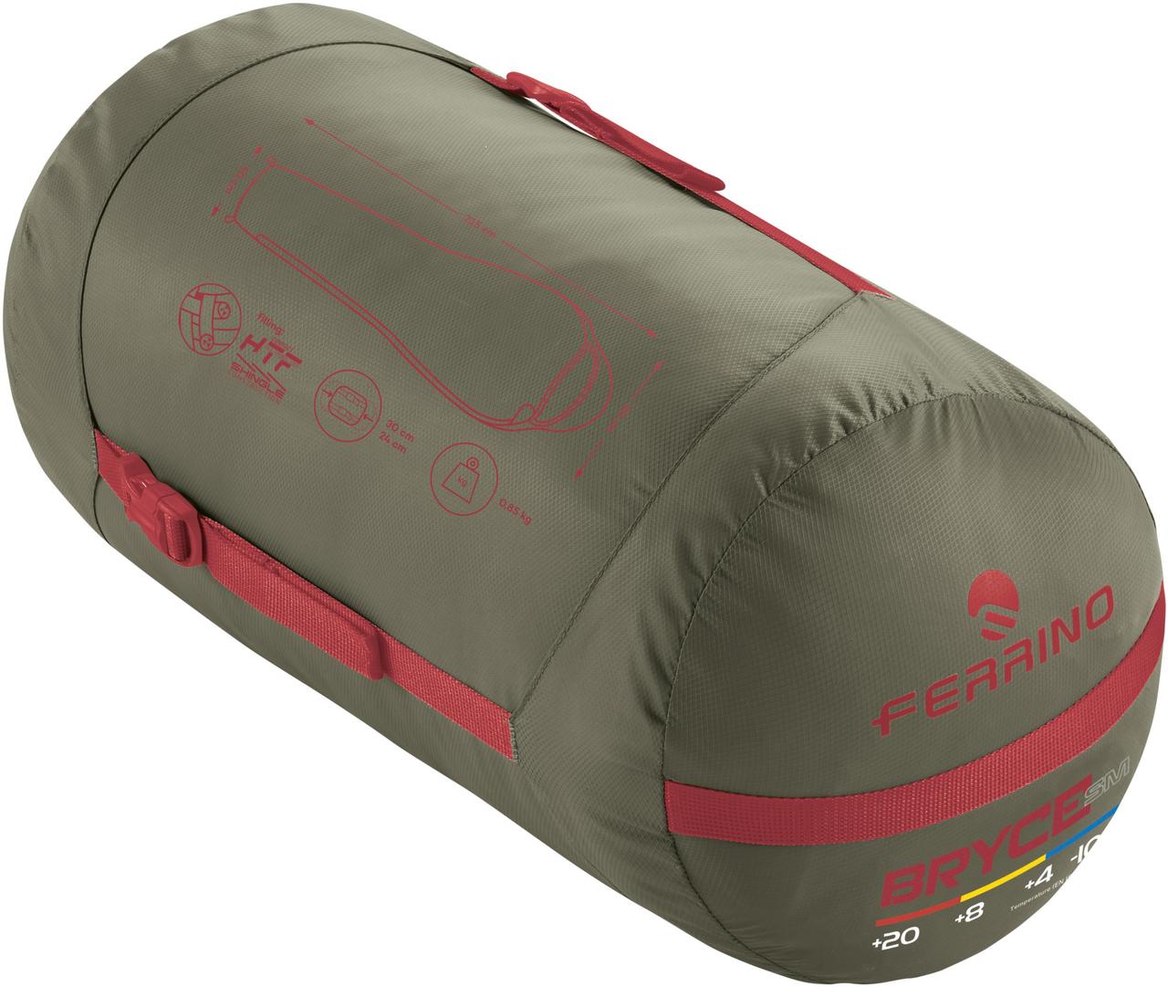 Ferrino Bryce SM/+7°C Green Left (86375MVV) - перші екологічно чисті спальні мішки Ferrino, виготовлені з перероблених тканин і наповнювачів Repreve®. Для виготовлення кожного мішка використовується близько тридцяти півлітрових ПЕТ-пляшок. Рекомендується для трисезонних походів.