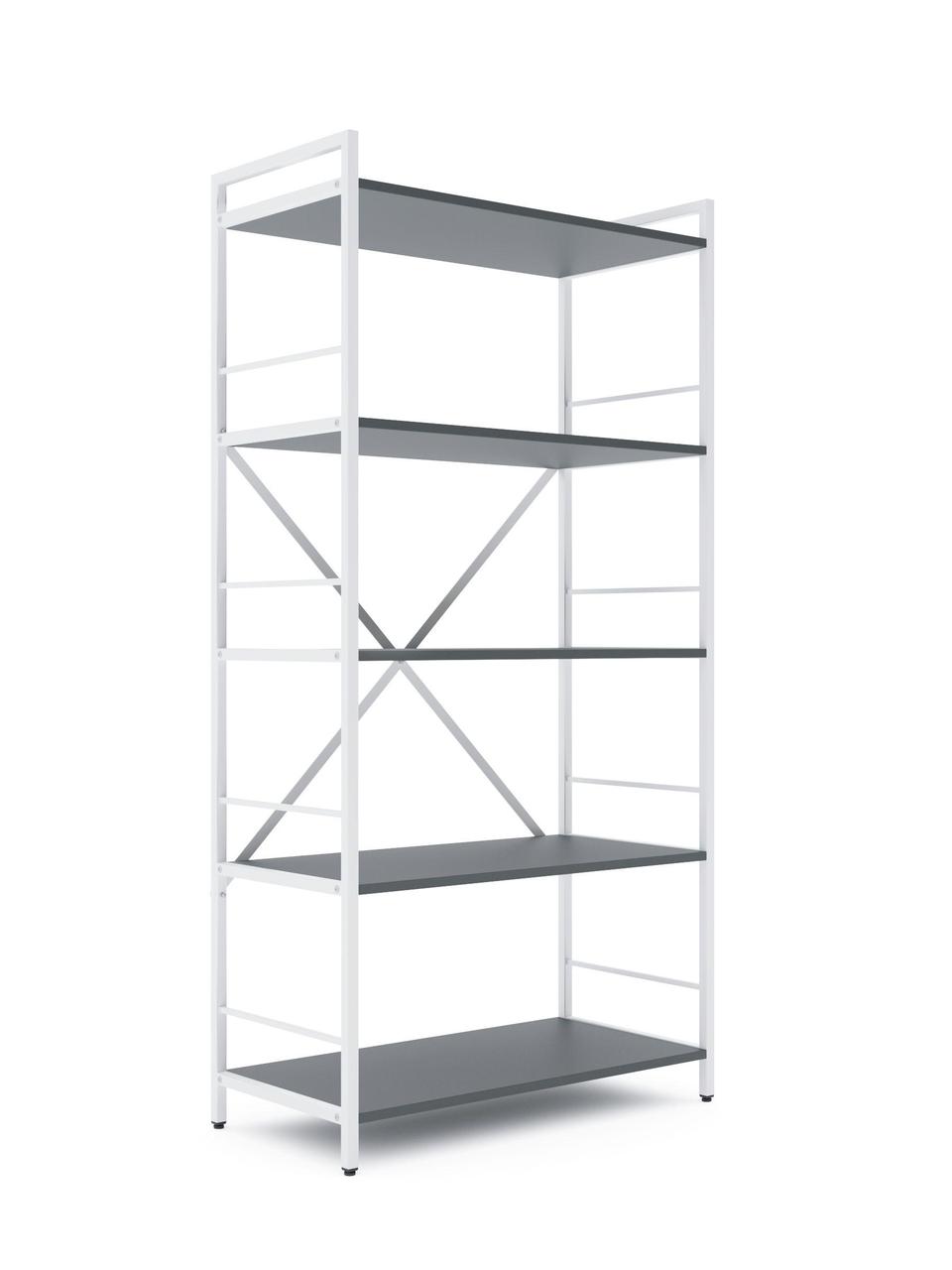 Модель доступна у двох варіантах каркаса: Білий або Антрацит. Полиці можна вибрати у відтінках, які часто застосовуються як базові в лофт-дизайні.