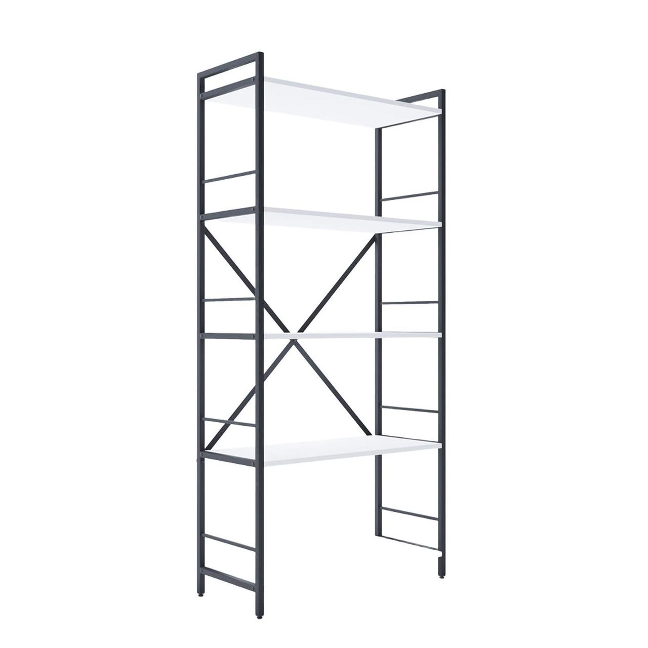 Модель доступна у двох варіантах каркаса: Білий або Антрацит. Полиці можна вибрати у відтінках, які часто застосовуються як базові в лофт-дизайні.