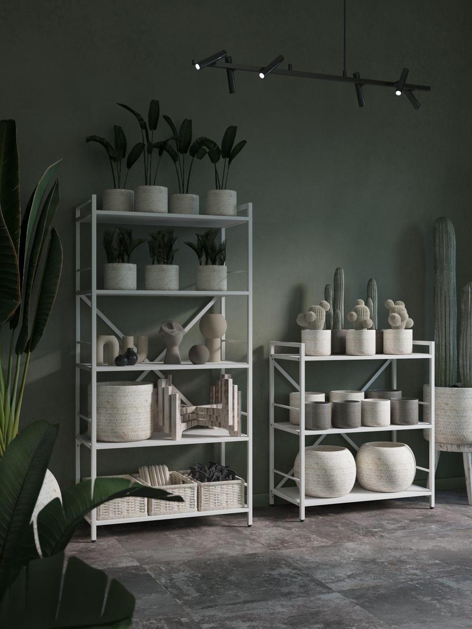 Модель доступна у двох варіантах каркаса: Білий або Антрацит. Полиці можна вибрати у відтінках, які часто застосовуються як базові в лофт-дизайні.