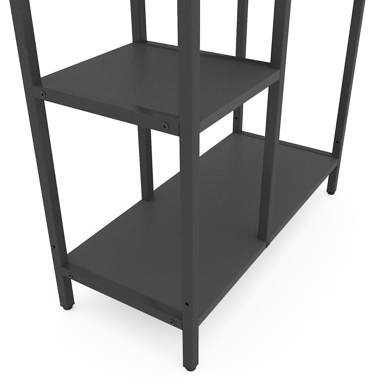 Модель доступна в двух вариантах каркаса: Белый или Антрацит. Полки можно выбрать в оттенках, которые часто применяются как базовые в лофт-дизайне.