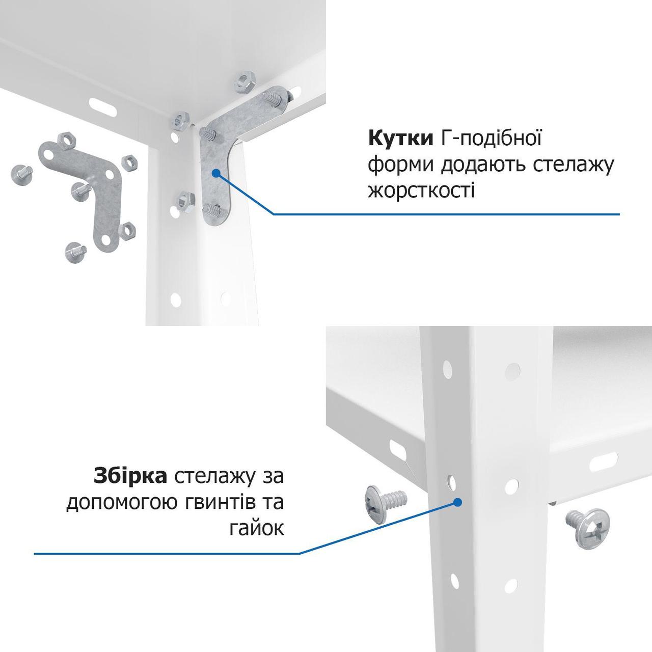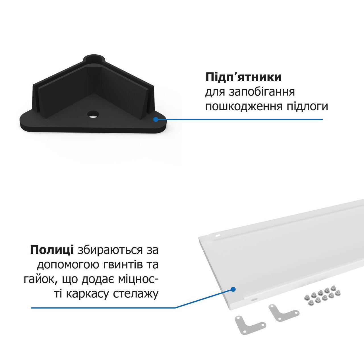 Полиці стелажу кріпляться на болтах, що полегшує та прискорює процес складання (15-30 хв).