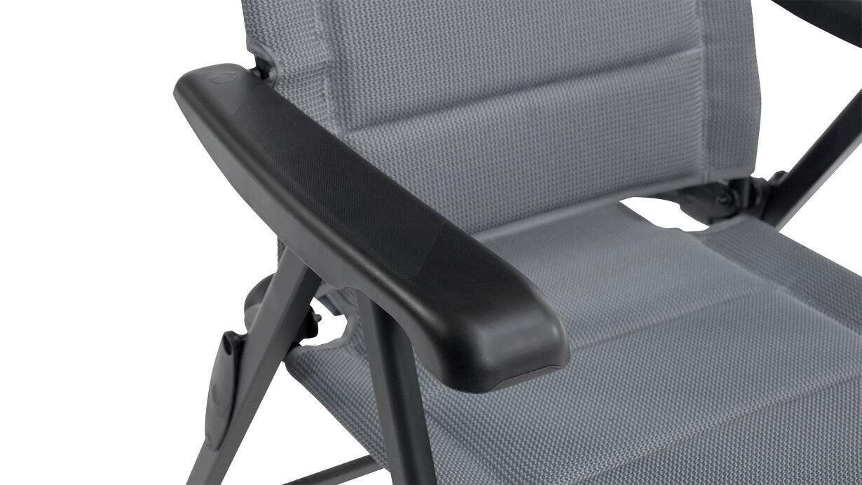 Стул кемпинговый Outwell Kenai сочетает быстросохнущую подкладку с сетчатой тканью Textiline стильного черного цвета. Кресло имеет регулируемый, съемный подголовник и водоотталкивающий материал под тканью, чтобы предотвратить впитывание воды в пенопластовую подкладку, если ее оставить под дождем.