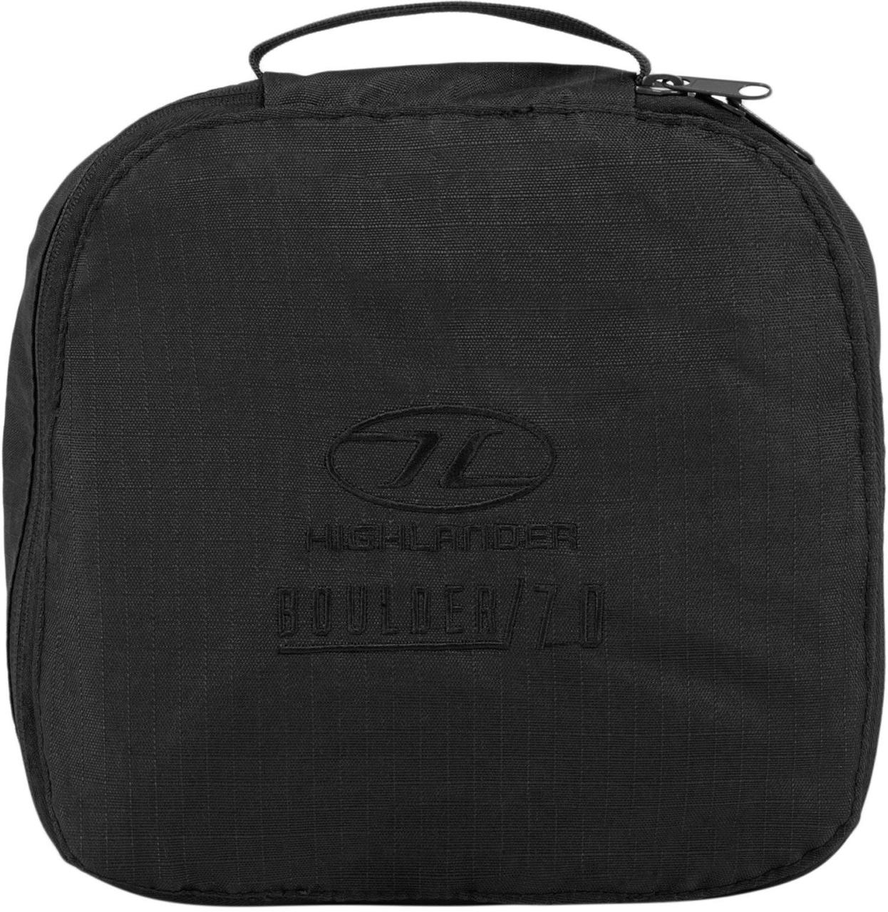 Highlander Boulder Duffle Bag 70L Black (RUC270-BK) - містка дорожня сумка для перенесення спорядження, що складається у власну кишеню для ефективної економії місця. Тканина 600D Ripstop Polyester водночас легка та надзвичайно міцна. Сумка дорожня Highlander Boulder Duffle Bag 70L Black (RUC270-BK) дозволяє взяти з собою стільки речей, скільки необхідно для тривалої подорожі.