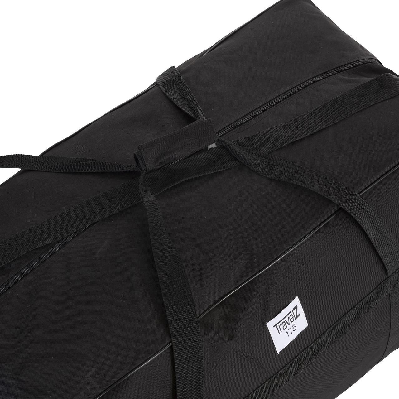 Сумка дорожня TravelZ Bag 175 Black (604347) – універсальна сумка, яку ви можете використати як легку дорожню сумку, спортивну сумку, сумку для зберігання речей. Ідеально підійде для легких речей, спортивного інвентарю, взуття, для перевезення великих об ємів. Одне велике основне відділення на блискавці. Ручки охоплюють сумку по всьому периметру та з'єднані застібкою на липучці. Виготовлена з легкого та міцного поліестерового матеріалу. Сумку можна скласти, що заощаджує багато місця.