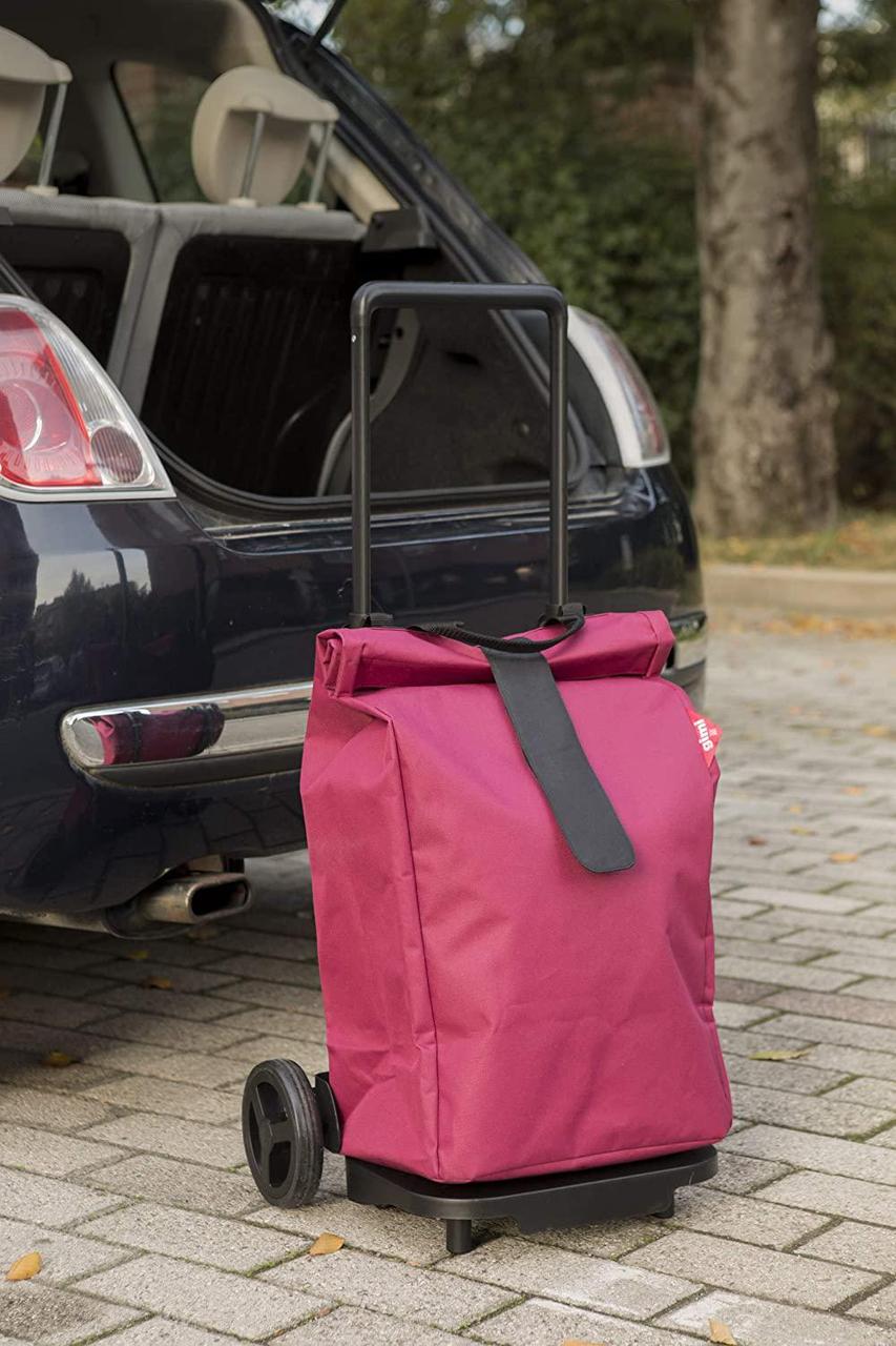 Сумка-візок Gimi Sprinter Violet (168406) - це стильна і вмістка сумка для шопінгу. Об'єм 50 літрів, легко розмістить велику кількість покупок. Водостійка тканина та зручна горловина сумки, яка згортається, забезпечують захист від попадання вологи, пилу або бруду всередину. Горловина сумки закривається застібкою за типом Velcro. На внутрішній стороні сумки розташована кишеня-гаманець на блискавці для зберігання дрібних предметів. Колеса діаметром 15 см дозволяють легко переміщати візок торговими центрами, ринками та міськими тротуарами. Ручка сумки розкладається подібно телескопічної системи. Сумка легко знімається з каркасу шасі за допомогою системи Easy-click, тим самим дозволяючи транспортувати на базовому шасі сторонні вантажі різної форми вагою до 30 кг. Платформа легко складається до наступного використання або транспортування в автомобілі.