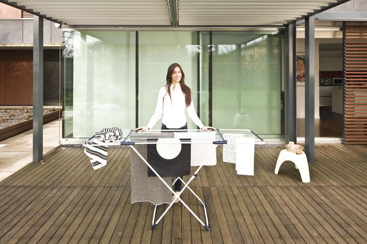 Стальные элементы конструкции имеют антикоррозийное покрытие. Одна из опорных стоек оснащена роликовым механизмом, благодаря которому перемещение по всей конструкции жилым помещениям стало чрезвычайно легким и максимально безопасным по отношению к поверхности пола. Рабочие направляющие увеличенного диаметра не оставляют полосы на белье в процессе сушки. Надежная и практичная, изготовлена из экологически чистых материалов, сушилка для белья Gimi Aliante (153382) станет надежным помощником, как в частном доме, так и в квартире.