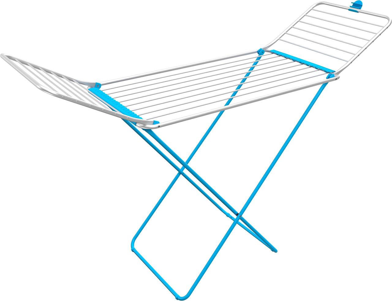 Сушилка для белья напольная Gimi Tender Blue (155141) выполнена из алюминия и стали, что делает ее вес минимальной и комфортной для переноски любой хозяйки. Также модель имеет сложную конструкцию с фиксацией боковых секций, которая позволяет легко складывать и хранить сушилку в кладовке, в шкафу или за дверью. Полная рабочая поверхность 20 метров, что позволяет легко разместить как большие простыни, так и белье небольших размеров.