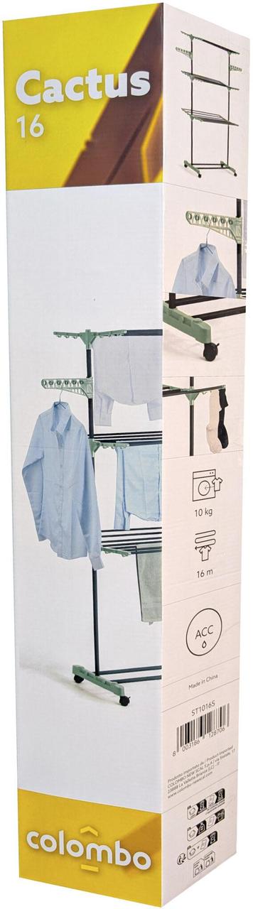 Сушарка для білизни підлогова Colombo Cactus (ST1016S) - це рішення для тих, хто цінує простір у домі. Завдяки вертикальній конструкції «баштового» типу, сушарка займає мінімум місця на підлозі, забезпечуючи при цьому величезну площу для розвішування речей. Ця модель розроблена спеціально для невеликих квартир, балконів або навіть для розміщення безпосередньо у душовій кабіні. Сушарка має 3 рівні решіток, що дозволяє висушити кілька завантажень пральної машини одночасно. Кожна решітка відкидається незалежно. Ви можете скласти середні полиці, щоб зручно розвісити довгі речі, такі як сукні або штани. Оснащена міцними колесами, що дозволяють легко переміщувати навіть повністю завантажену сушарку по кімнаті, не пошкоджуючи підлогу. Кути конструкції обладнані спеціальними кронштейнами для вішалок (плічок), що ідеально підходить для делікатної сушки сорочок та блузок без заломів. У складеному вигляді сушарка стає пласкою (товщиною 15 сантиметрів), тому її легко сховати за шафу або в комору.