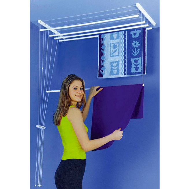 Сушарка стельова для білизни «Глорія, 1,4 метра» складається з двох пластмасових кронштейнів, які кріпляться шурупами до стелі, а також пересувних сталевих трубок. Трубки кріпляться на шнурах. Положення трубок регулюється шнурами з двома тримачами і фіксуючої скоби.