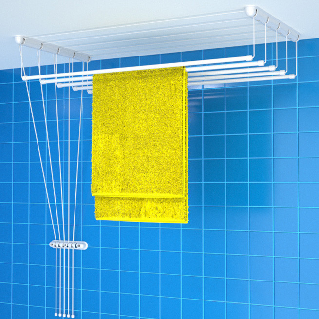 Сушарка стельова для білизни «Глорія, 2,2 метра» складається з двох пластмасових кронштейнів, які кріпляться шурупами до стелі, а також пересувних сталевих трубок. Трубки кріпляться на шнурах. Положення трубок регулюється шнурами з двома тримачами і фіксуючої скоби.