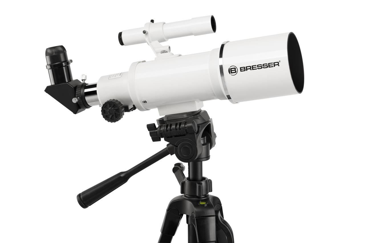 Телескоп Bresser Classic 70/350 Refractor являє собою короткофокусний середньоапертурний рефрактор з якісною оптикою. Короткофокусні ахроматичні рефрактори з діаметром лінзи 70 мм забезпечують велике поле зору і досить широкі можливості, як для планетарних спостережень, спостережень зоряних скупчень, так і для спостереження за дикою природою. Модель постачається в комплекті з обертальною призмою, яка забезпечує правильне вертикальне зображення, можна використовувати як потужну підзорну трубу. Завдяки короткому фокусу і великій світлосилі, ця модель буде дуже цікава для спостереження протяжних об'єктів слабкішого світіння, а також для так званих екскурсій зоряним небом. Телескоп поставляється практично зібраним і з необхідним набором аксесуарів для негайного старту спостережень. Телескоп Bresser Classic 70/350 Refractor укомплектований алюмінієвим штативом з можливістю регулювання по висоті від 73 до 160 см. Комплектація телескопа включає адаптера для камери смартфона (планшета).