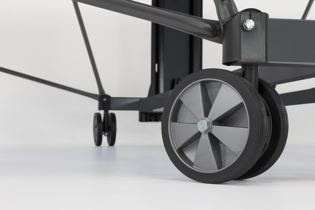 Garlando Champion Outdoor 3 mm Blue (C-470EB) - всепогодний тенісний стіл, призначений для гри в настільний теніс як на вулиці, так і в закритих приміщеннях. Ігрова поверхня виконана з меламінових плит товщиною 3 мм із металевою крайкою по периметру. Модель надзвичайно стійка, завдяки конструкції з квадратними ніжками з металевих трубок 30х30 мм і подвійним горизонтальним з’єднувальним планкам. Чотири здвоєні транспортувальні колеса діаметром 128 мм обертаються на 360°, що суттєво полегшує переміщення столу за потреби. Тенісний стіл оснащений сіткою та тримачем для ракеток і м'ячів. Компактний пристрій автоматичного закривання мінімізує обтяження після того, як настільний стіл складено, а система ECS дозволяє розблокувати стільниці одним рухом максимально швидко та безпечно. Складана конструкція з автоматичною системою блокування забезпечує зручне зберігання столу в домашніх умовах. Піднявши одну з половинок стільниці, тенісний стіл можна використовувати як для одиночних тренувань, так і для гри людьми з обмеженими можливостями. Стільниця забезпечує хороший відскік м'яча, а покриття антивідблиску дозволяє грати довше, не напружуючи очей. Тенісний стіл Garlando Champion Outdoor 3 mm Blue (C-470EB) відповідає Європейським стандартам безпеки EN 14468-1/2, рекомендований для інтенсивного використання в школах і клубах.