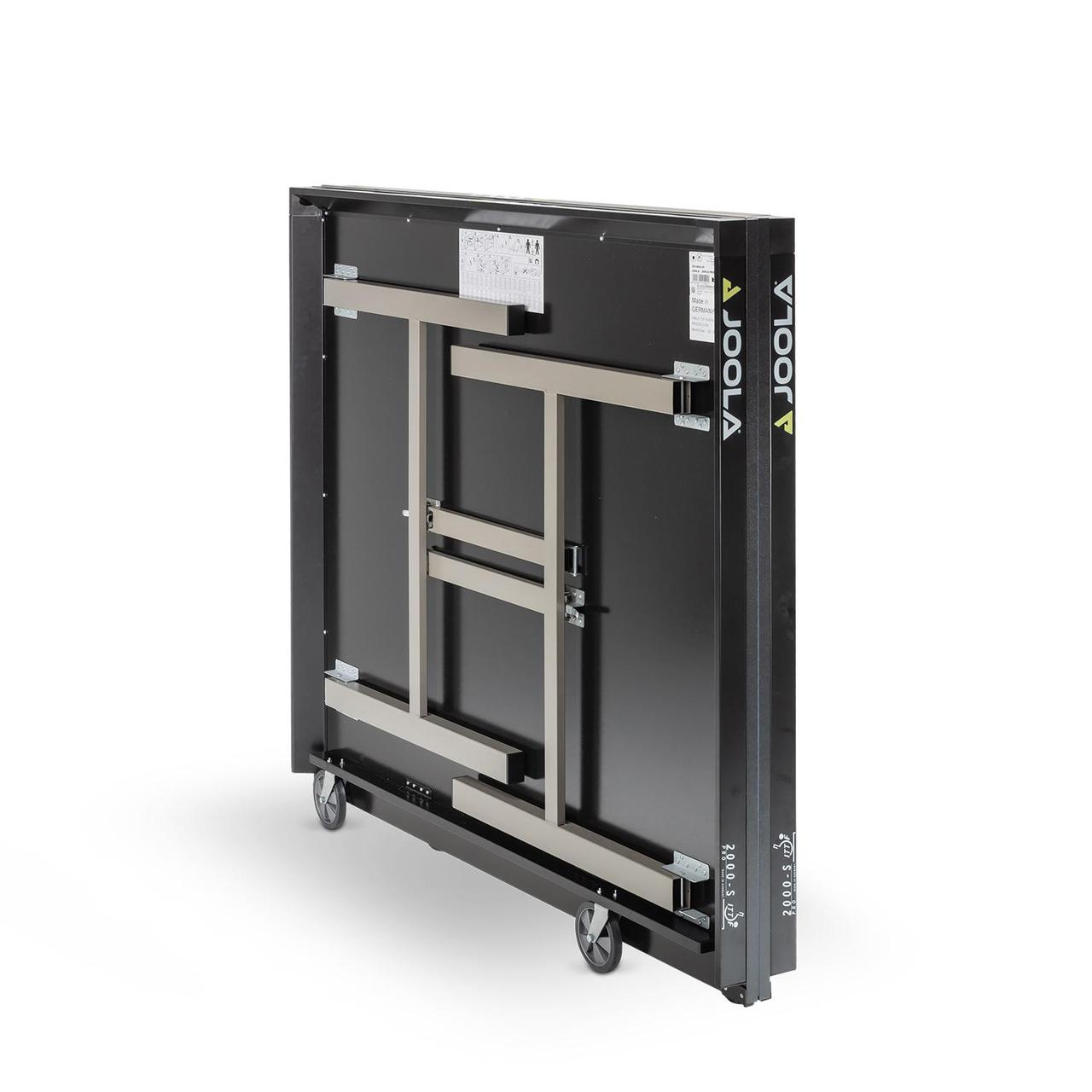 Тенісний стіл Joola 2000-S Pro ITTF відповідає класу А європейського стандарту 14468-1. Стільниця товщиною 25 мм забезпечує оптимальну та швидку гру. Ігрова поверхня проходить попередню обробку в кілька основних етапів і отримує спеціальний лак, який наноситься за допомогою процесу лиття лаку. Цей спеціальний лак гарантує високий коефіцієнт тертя ковзання з дуже низьким рівнем блиску. Ігрові лінії нанесені за допомогою трафаретного друку дуже тонкі та непомітні, досягаючи тих самих ігрових властивостей, що й ігрові поверхні. Стіл має каркас з ніжками із практичним механізмом складання, що спрощує установку та демонтаж. Він також має два великі транспортувальні ролики на кожній половині столу для легкого вертикального транспортування. Тенісний стіл Joola 2000-S Pro ITTF на 100% виготовлений у Німеччині та має ліцензію міжнародної федерації настільного тенісу (ITTF).