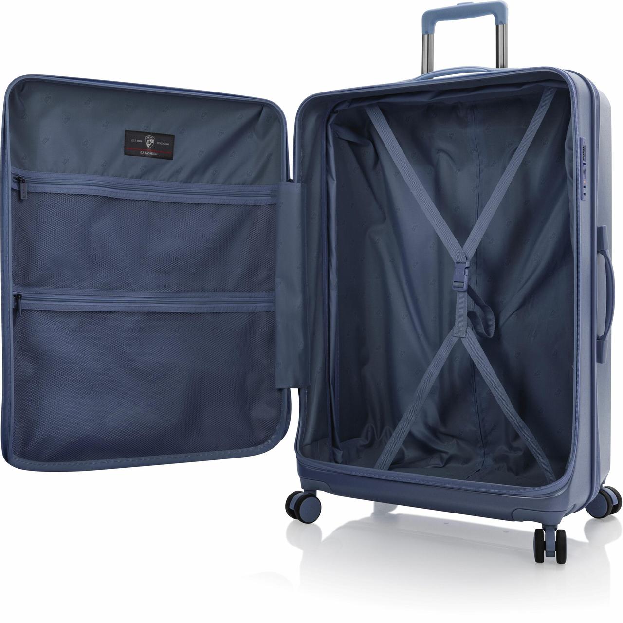 Чемодан Heys EZ Fashion (L) Navy (10162-0028-30) в отличие от традиционной конструкции с разделением 50/50, которая встречается в большинстве жестких чемоданов, отличается системой открывания спереди. Это дает возможность упаковки вещей вглубь, используя передний клапан. Изготовлена из поликарбонатного композита: легкого, прочного и ударопрочного материала. Внешняя поверхность имеет легкое тиснение, что предотвращает появление царапин и потертостей. Внутренняя часть целиком на подкладке. Основное отделение имеет два эластичных ремня для фиксации вещей, закрепляющихся застежкой. Также есть два сетчатых кармана для хранения необходимых мелочей. Есть возможность увеличить полезный об ем чемодан до 20% благодаря наличию расширительного клапана.
