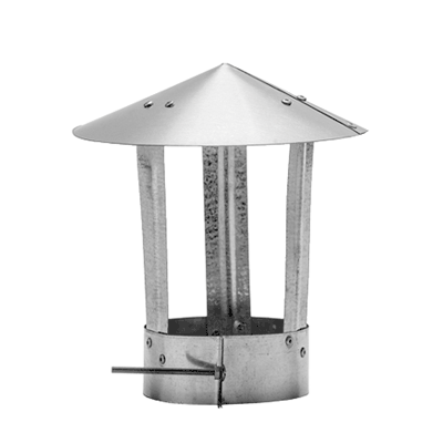 Высота стоек и размеры конуса зонта подбираются в зависимости от диаметра трубы и вида вентиляции (принудительная или естественная). Стягивание краев бандажного хомута осуществляется специальным саморезом, входящим в комплект поставки. В качестве дополнительного крепления вентиляционного зонта к концевому элементу воздуховода, можно использовать саморезы типа «семечка». Усиление крепления предотвратит срывание изделия порывами сильного ветра. Для устранения шумов и гашения вибрации под хомут необходимо подкладывать полосу из эластичного прокладочного материала (резина, паронит).