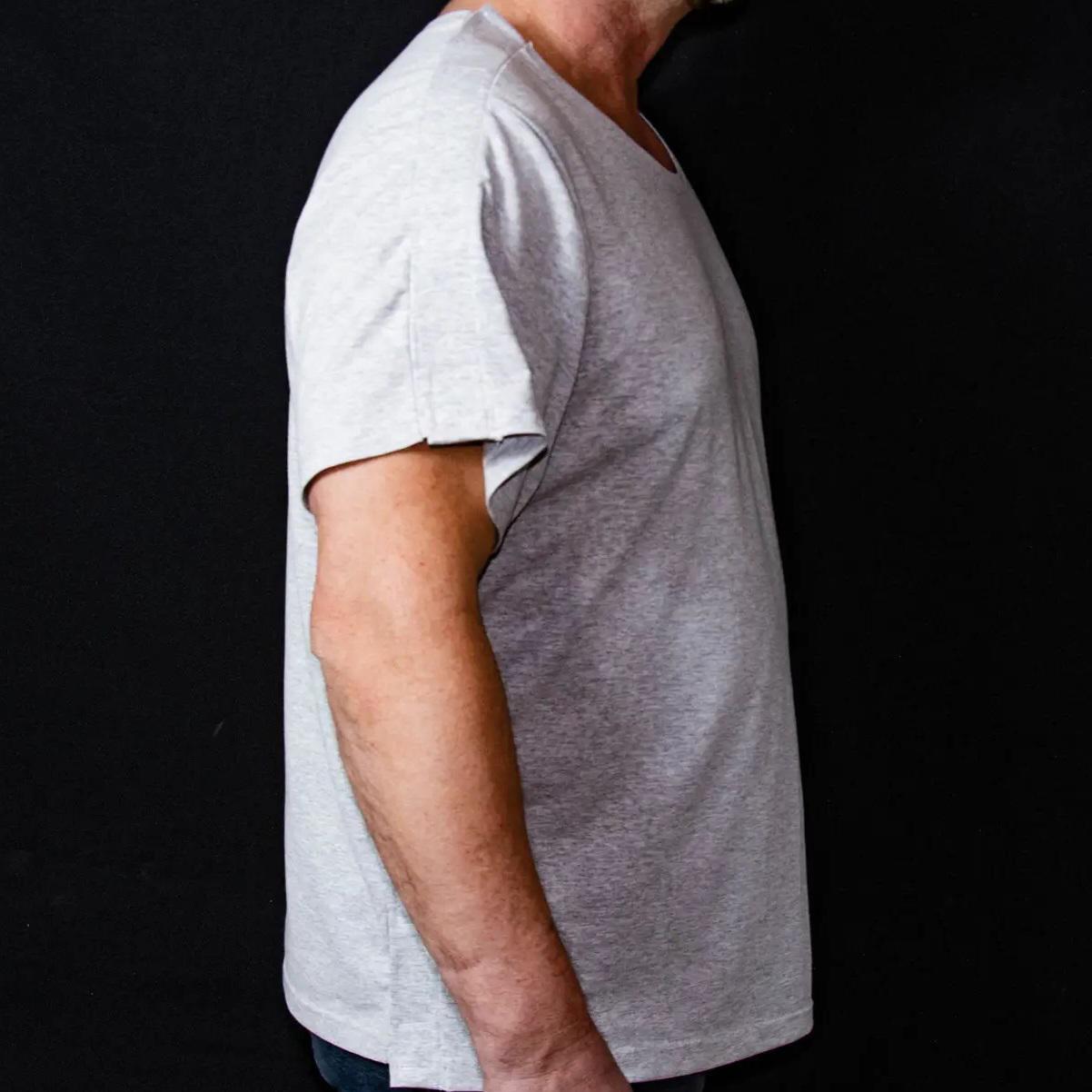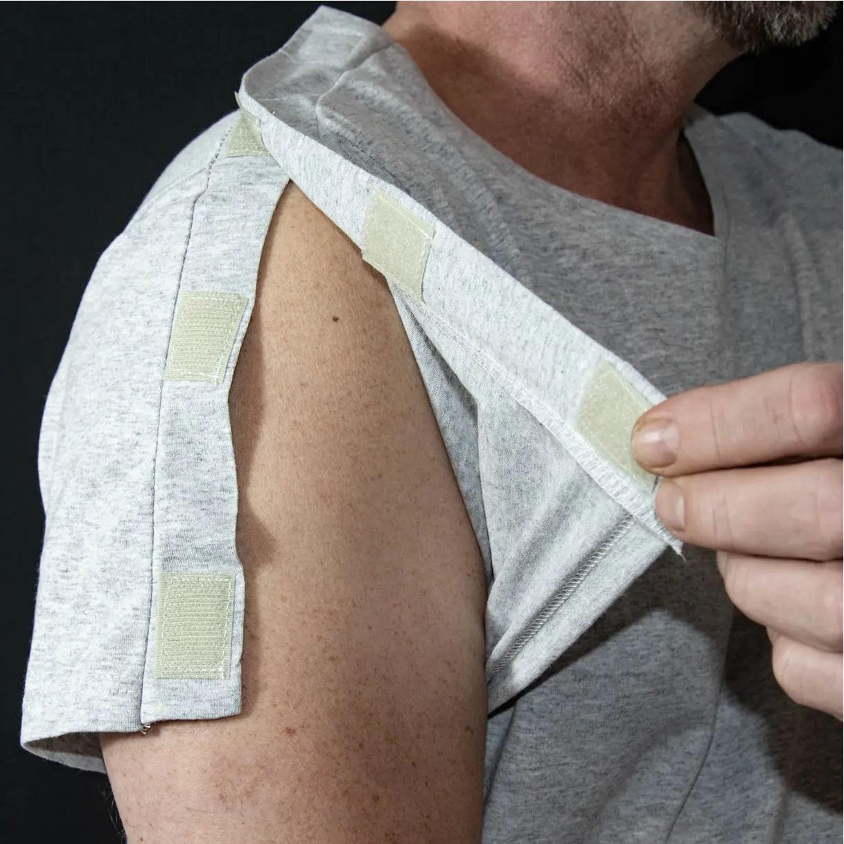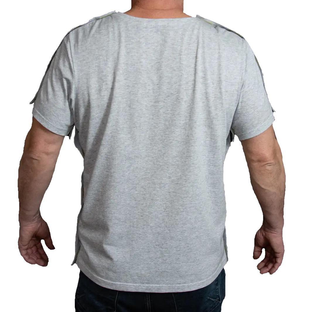 Коли стикаєшся із проблемою зі здоров'ям, це завжди стрес. Слабкість, втома, незахищеність, фізична та моральна пригніченість. Пережити захворювання чи травму завжди важко. Особливу незручність відчувають люди з травмованими кінцівками. Адже їм не один день потрібно перебувати у гіпсі або того гірше в апараті Ілізарова. Банальна щоденна потреба перетворюється на тортури. Адже одягнутися дуже не просто, саме з цією метою використовуються адаптовний одяг. Зручні застібки-фіксатори по всій довжині допомагають швидко і безболісно одягнути чи роздягнути пацієнта. Повірте, у цій ситуації та в цей період життя, це необхідна річ! По всій довжині рукавів та плечей застібки з якісної липучки, для швидкого доступу до будь якої частини тіла. Футболка з коротким рукавом ідеально підходить для літнього періоду. Тканина м'яка дихаюча, гіпоалергенна. Має U-подібний виріз горловини. Матеріал: трикотаж; Колір: меланж; Розмір: 54- XXL.