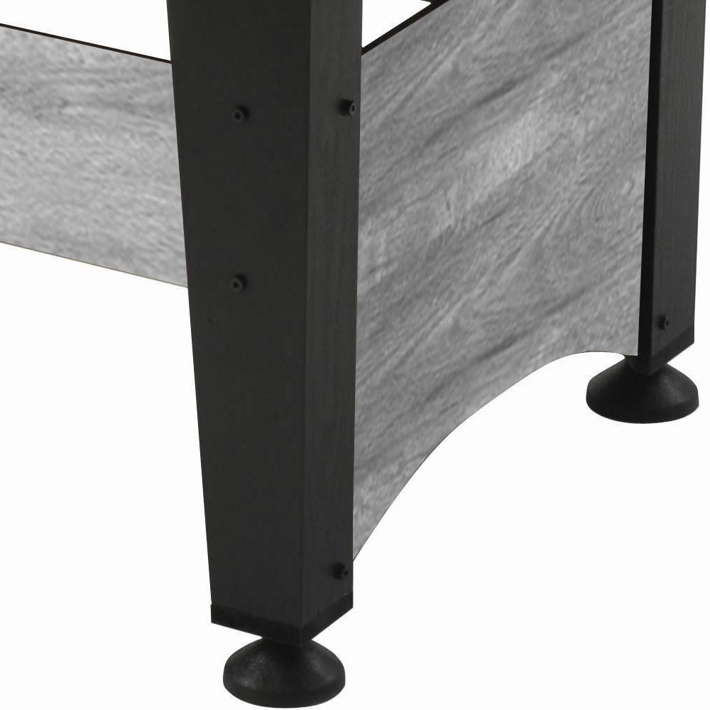 Чорні опорні ніжки та поперечки кольору сірого дуба із МДФ товщиною 12 мм із меламіновим покриттям.