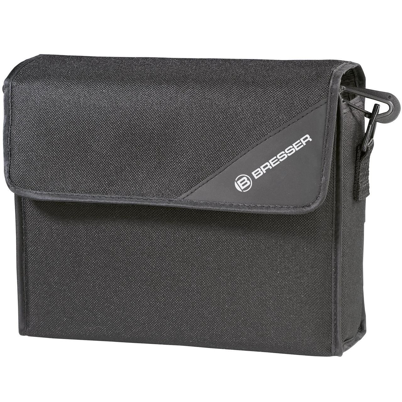 Бінокль BRESSER HUNTER 10x50 має прогумований, ударостійкий корпус. Спеціальне стійке до стирання, антивідблиск, повне просвітлення лінз блакитного відтінку захищає від подряпин і сприяє максимальному проникненню світла (не менше 75%), а призми, зроблені зі скла BK7, дозволять отримати більш якісну та контрастну картинку на окулярі. Різкість зображення регулюється центральним колесом, також передбачена можливість корекції діоптрію за допомогою кільця на правому окулярі, щоб підлаштувати пристрій під особисті особливості зору. Також можна відрегулювати міжосьову відстань для максимально комфортного спостереження. При подібних оптичних характеристиках поле цього бінокля перевершує аналогічні моделі інших виробників і при цьому збережені компактні розміри та невелика вага.