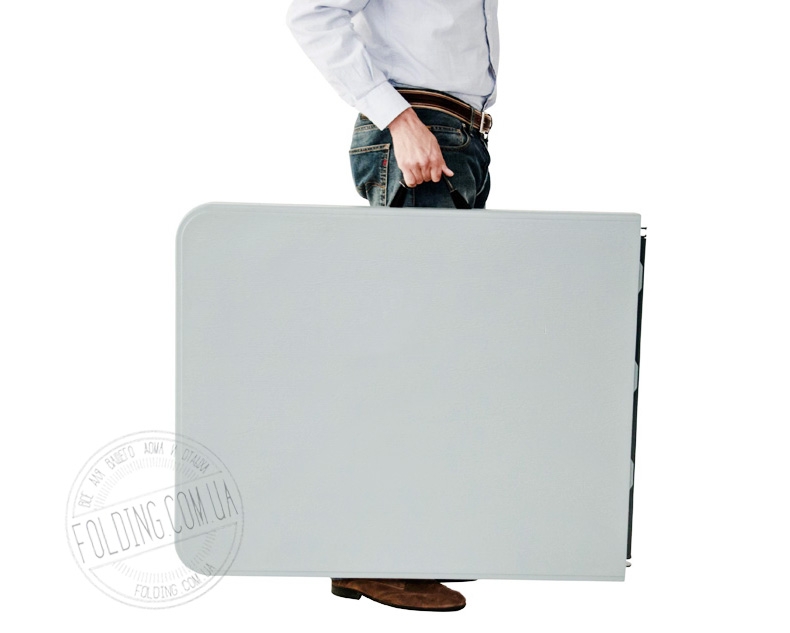 «Большой кемпинговый стол XXL» имеет прочную и устойчивую конструкцию с надежной системой фиксации. Он просто и быстро складывается в компактный чемодан с ручкой, удобный для транспортировки и хранения. Для изготовления столешницы стола используется ударопрочный пластик белого цвета, который не боится сырости и колебаний температуры. Ножки стола изготовлены из стали и снабжены пластиковыми наконечниками.