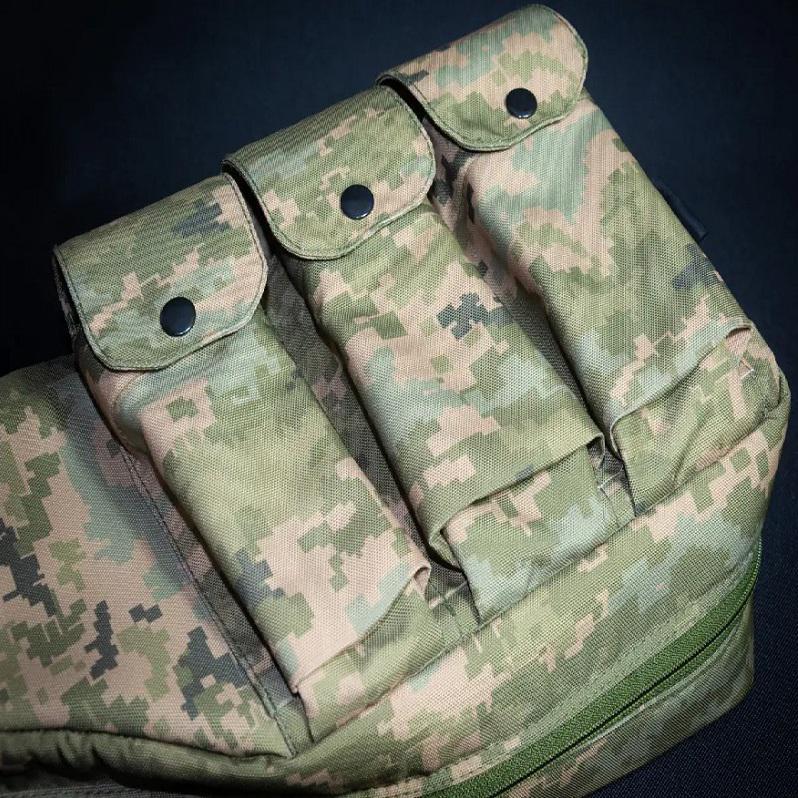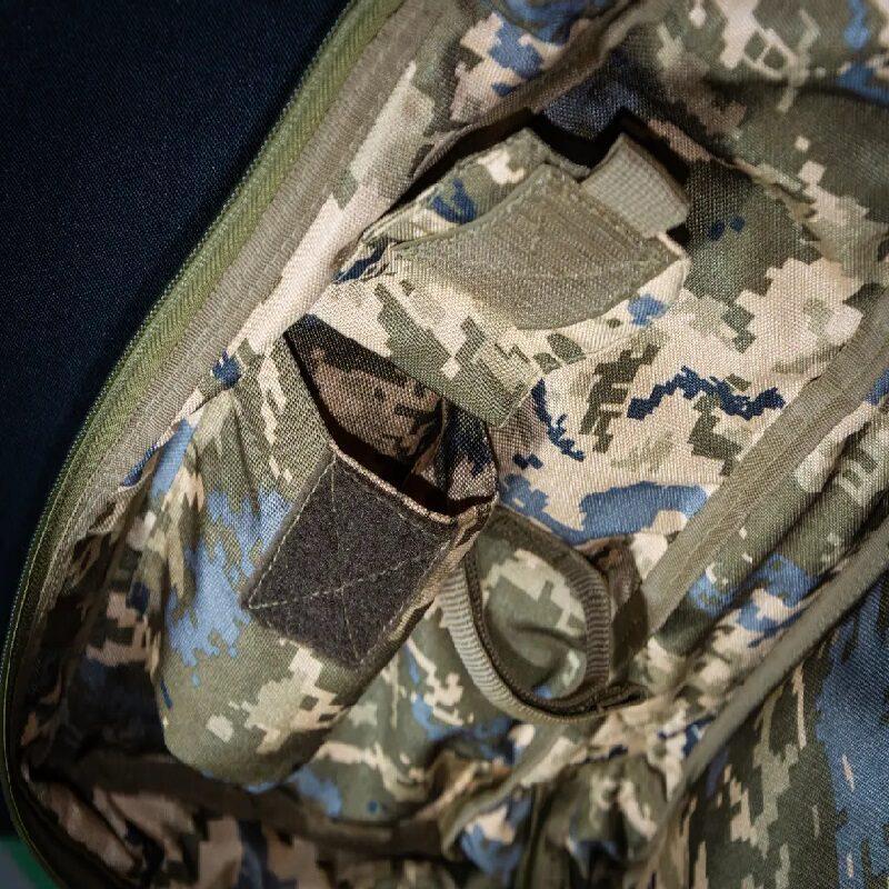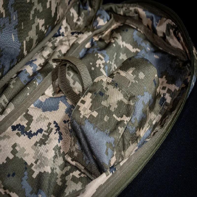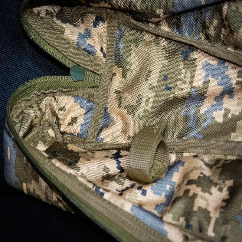 Чохол під складний автомат Калашнікова.Необхідний з метою збереження поверхні зброї, захисту від механічних пошкоджень та бруду. А також це ідеальне рішення для транспортування зброї. Звісно, особливе значення має якість тканини та фурнітури, достатня кількість відділень та кишень. Має дві шлейки для ручного носіння, і на плечі. Виготовлений із щільного якісного матеріалу Cordura 1200. Необхідний з метою збереження поверхні зброї, захисту від механічних пошкоджень та бруду. Багатофункціональний чохол виготовлений із міцної тканини чорного кольору, стійкий до розривів та деформацій, має водовідштовхувальні властивості та призначений для довгих років експлуатації. Чохол оснащений регульованим по довжині наплічним ременем із пластиковими пряжками, а також додатковою ручкою збоку для більш зручного перенесення. Тканина — Cordura 1200D; Колір – піксель; Вага – 1 кг.