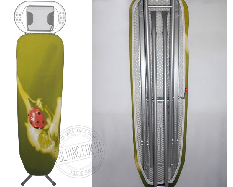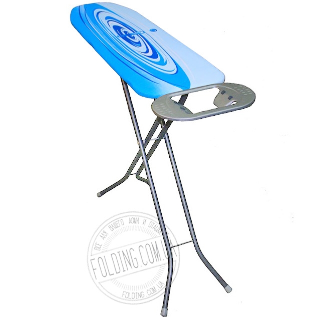Подставка под утюг изготовлена из металлического листа с антипригарными вставками и имеет стационарное крепление к гладильному столу.