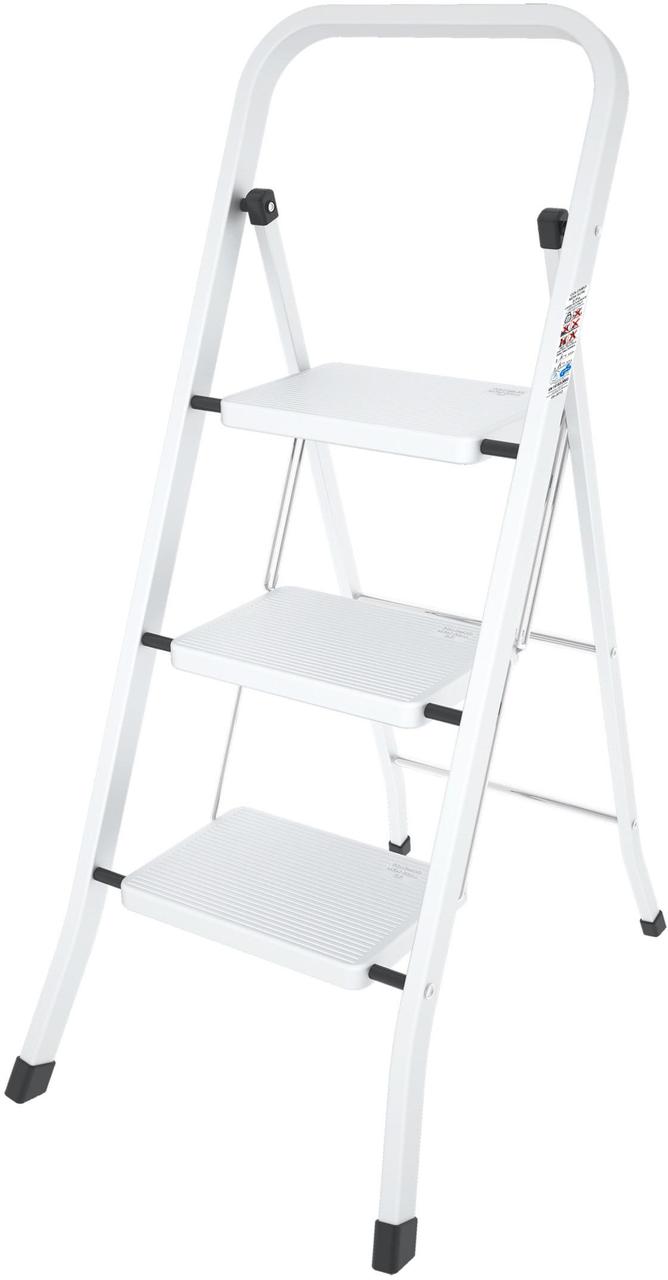Драбина Colombo Factotum 3 щаблі (G110L03W) - міцна та надійна. Виготовлена в Італії відповідно до європейського стандарту якості EN 14183. Максимальне навантаження - 150 кг. Ідеально підійде тим, хто цінує практичність, легкість у використанні та стильний дизайн. Драбина має три зручних щаблі з антиковзним покриттям. Це гарантує безпеку ваших ніг при використанні драбини. Опорні ніжки з пластиковим захистом перешкоджають небажаному ковзанню. Складані щаблі забезпечують мінімальну товщину та максимальну компактність. Завдяки цій особливості, товщина драбини у складеному вигляді лише 5 см, тому у вас не виникне проблем із місцем для її зберігання.