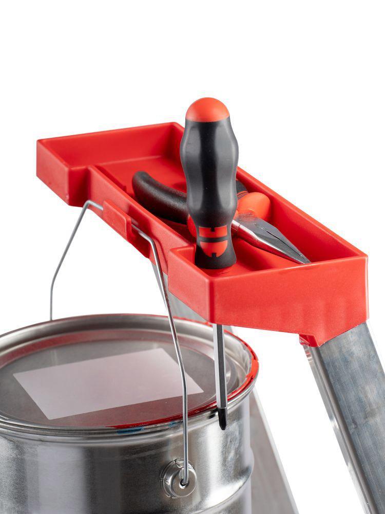 Драбина Rolser Escalera Brico 6 щаблів (BRI004) - сертифікована відповідно до європейського стандарту якості UNE-EN131. Максимальне навантаження - 150 кг. Модель рекомендована як для професійного, так і для домашнього використання. Драбина обладнана захистом від випадкового складання. Модель має шість щаблів з антиковзною структурою. Зручна ергономічна полиця для інструментів із вбудованим гаком для навісного інвентарю. Опорні ніжки мають пластиковий захист, який перешкоджає небажаному ковзанню.