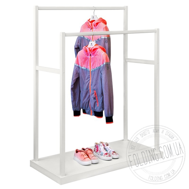 В нижней части стойки находится опорная часть, выполненная из ДСП в виде небольшого подиума. Она предназначена для размещения обуви или коробок с различными вещами.