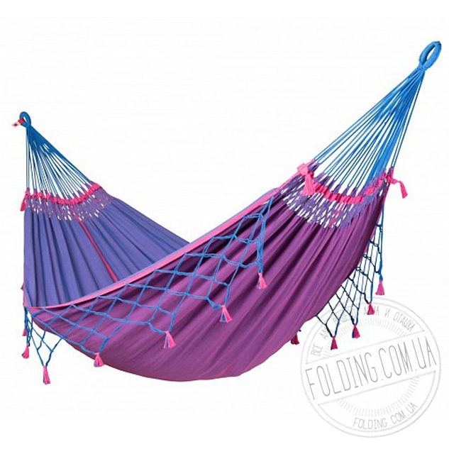 Традиционная плетёная сеть бразильских подвесных гамаков, украшенная бахромой, искусно объединяет пространство для лежания с приспособлениями, служащими для подвешивания гамака. Плетёная сеть с бахрамой является не только эстетическим украшением, она также оптимально распределяет вес тела по обеим сторонам на подвесные шнуры и при этом обеспечивает дополнительный комфорт.