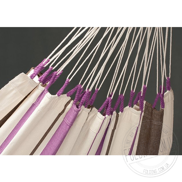 Множество крепких канатов, удерживающих сукно, препятствуют его сворачиванию и растягиванию в процессе отдыха. Плотные открытые петли позволяют всего за пару мину установить гамак и также легко его убрать. Модель отлично подходит для машинной стирки – ткань не косматится и не растягивается, быстро высыхает и сохраняет свою яркость.