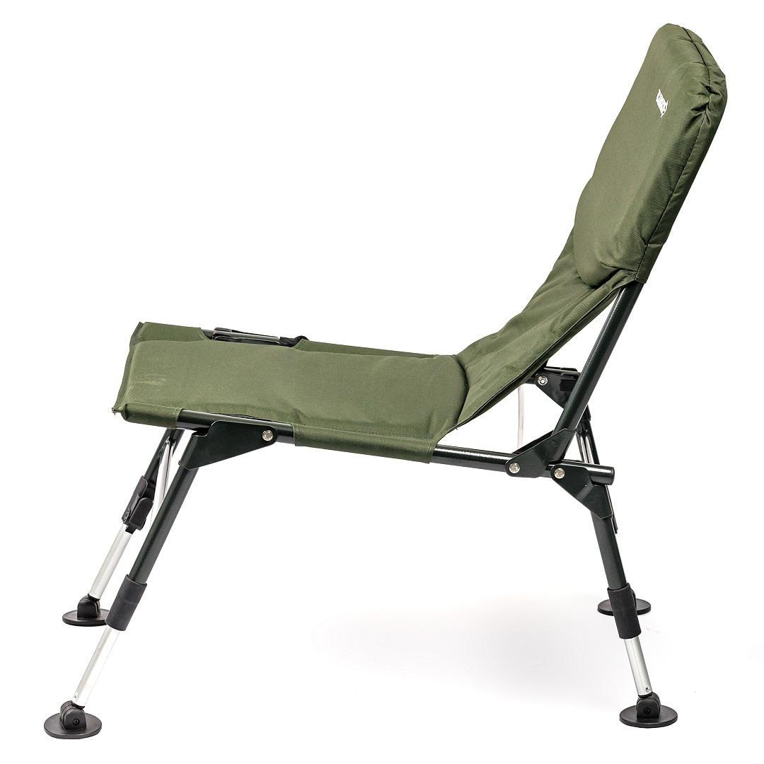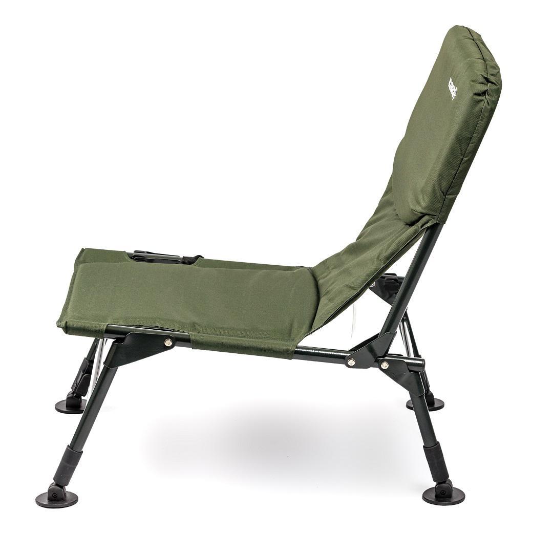 Коропове крісло Ranger Fisherman Light - ідеальний вибір для рибалки. Завдяки своїм компактним розмірам одна з найулюбленіших моделей серед рибалок. Головна його перевага в тому, що можна відрегулювати кожну ніжку на потрібну висоту та під кутом, щоб крісло на будь-якій нерівній поверхні розташовувалося рівно. Регульовані ніжки надають можливість адаптувати крісло до нерівного ґрунту. Ніжки оснащені широкими "п'ятаками", щоб запобігти зануренню в м'який ґрунт. Сталева конструкція крісла досить потужна і тому здатна витримувати значну вагу. Сидіння та спинка мають наповнювач, тканина з водовідштовхувальним та зносостійким покриттям. В верхній частині спинки вбудована додаткова подушка для підтримки голови. Спинка не регулюється, проте має кут нахилу тому сидіти в даній моделі буде дуже зручно.  Можна кріпити обважування і всілякі пристосування для риболовлі. Відмінне поєднання ціни і комфорту. Оснащений м'якими накладками на труби каркаса. Крісло можна використовувати для відпочинку на природі, на дачі і у дворі. Компактно складається для зберігання і транспортування. Додатково збоку передбачена ручка для зручного перенесення. Характеристики: - тканина крісла: Оксфорд 600D з м'яким наповнювачем; - колір: темно-зелений; - каркас: стальова труба Ø22мм; - розмір в розкладеному вигляді: 69-78х67х49 см (ВхГхШ); - розмір в складеному вигляді: 70х15х54 см (ВхГхШ); - розмір сидіння: 42х47 см (ГхШ); - висота сидіння: від підлоги 28-31, 37-39 см; - висота спинки: від сидіння 50 см; - розмір висувних ніжок: 10 см; – товщина наповнювача: 2 см-крісло, 6 см-подушка; - вага: 4,5 кг; - навантаження: 130 кг.