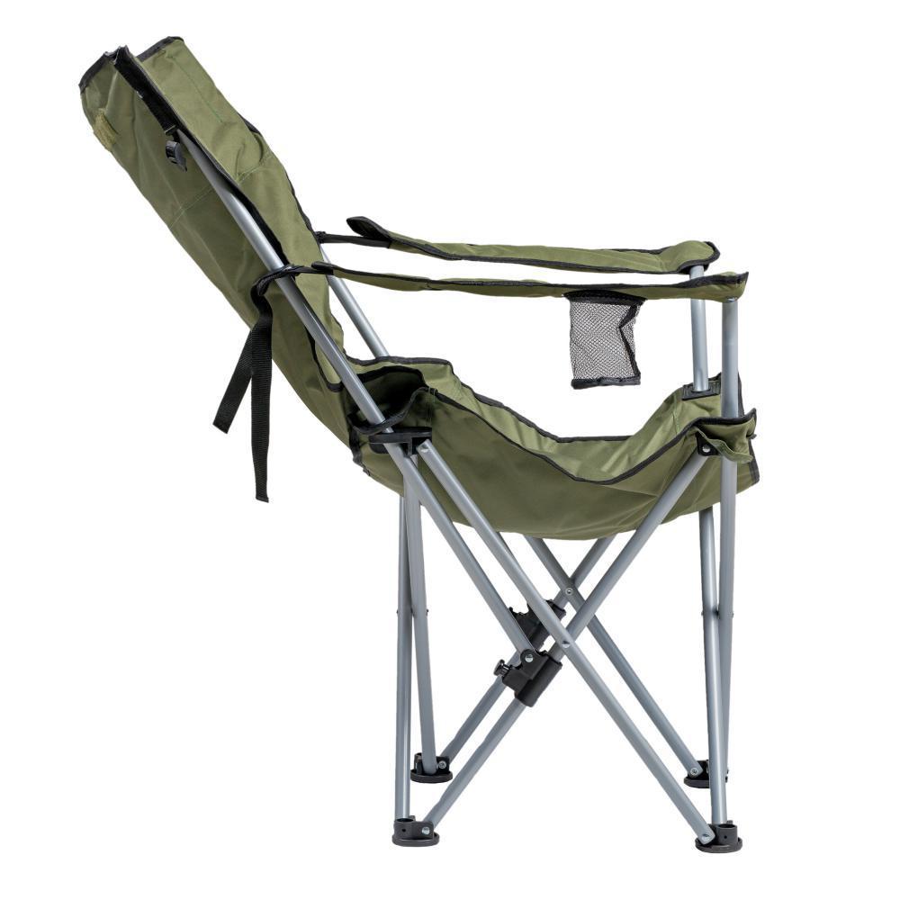 Розкладне крісло-шезлонг Ranger Stream Lux займає дуже мало місця в складеному стані, тому вирушаючи на риболовлю чи на природу, не забудьте взяти його з собою. Спеціальні ніжки не дають кріслу провалюватися під навантаженням людини в ґрунт. У крісла зручні підлокітники з підсклянником для чашок, щоб улюблений напій завжди був під рукою. У підголівнику розташована додаткова подушка на липучці, для забезпечення більшого комфорту. Крісло без зайвих зусиль трансформується в шезлонг і Ви зможете насолоджуватися відпочинком, або позасмагати, лежачи на пляжі. Для нахилу не треба робити зайвих зусиль, у крісла Stream Lux знизу передбачені фіксатори, завдяки яким регулюється нахил. Крісло змінює нахил у 3-х положеннях. Аби підлокітники не провисали, додатково передбачені ремені натягування, Ви власноруч можете зменшити або збільшити їх натяг. Крісло легко складається до компактних розмірів в чохол з плечовим ременем для зручності перенесення. Колір крісла відмінно підходить до іншої туристичної екіпіровки та буде добре гармоніювати з фарбами природи. Розкладне крісло шезлонг Ranger Stream гарно підходить для риболовлі, для полювання, відпочинку на дачі, під час відпочинку на березі водойми або в лісі - ось основна область, де можна використовувати розкладні крісла. Купити розкладне крісло шезлонг Ranger, значить забезпечити собі комфортний відпочинок. Характеристика: - тканина крісла: поліестер 600D; - чохол з тканини 210D; - колір: тканина - темно-зелений, каркас - сірий; - рама: сталева труба з порошковим покриттям, Ø 19 мм; - розмір в розкладеному вигляді: 74-89х58-98х85 см (ВхГхШ); - розмір в складеному вигляді: 92х19х19 см (ВхГхШ); - розмір сидіння: 48х54 (ГхШ); - висота сидіння: від підлоги 37 см; - висота спинки: від сидіння 51,5 см; - вага: 3,5 кг; - навантаження: 120 кг.