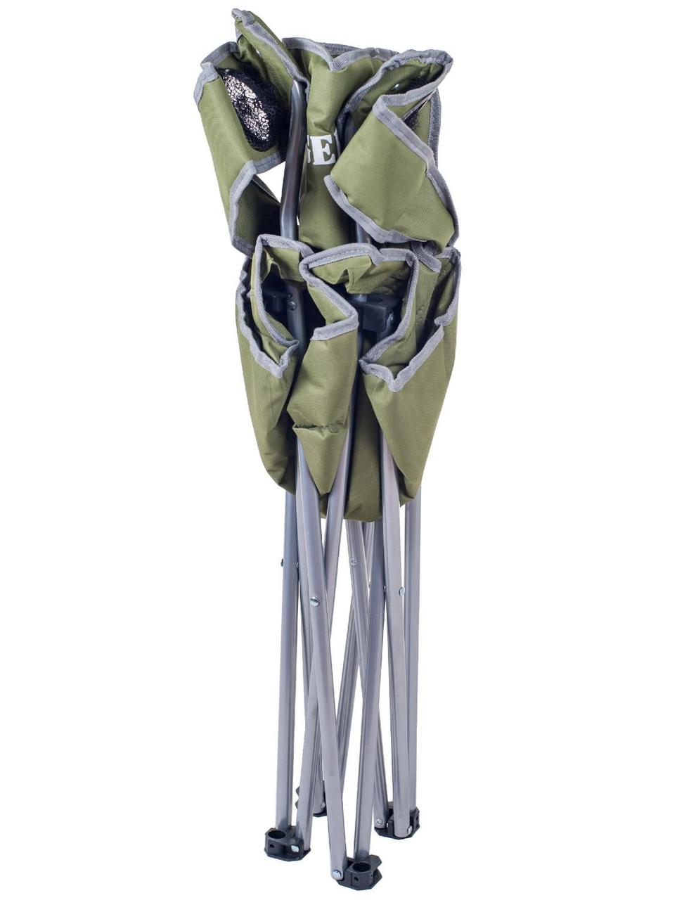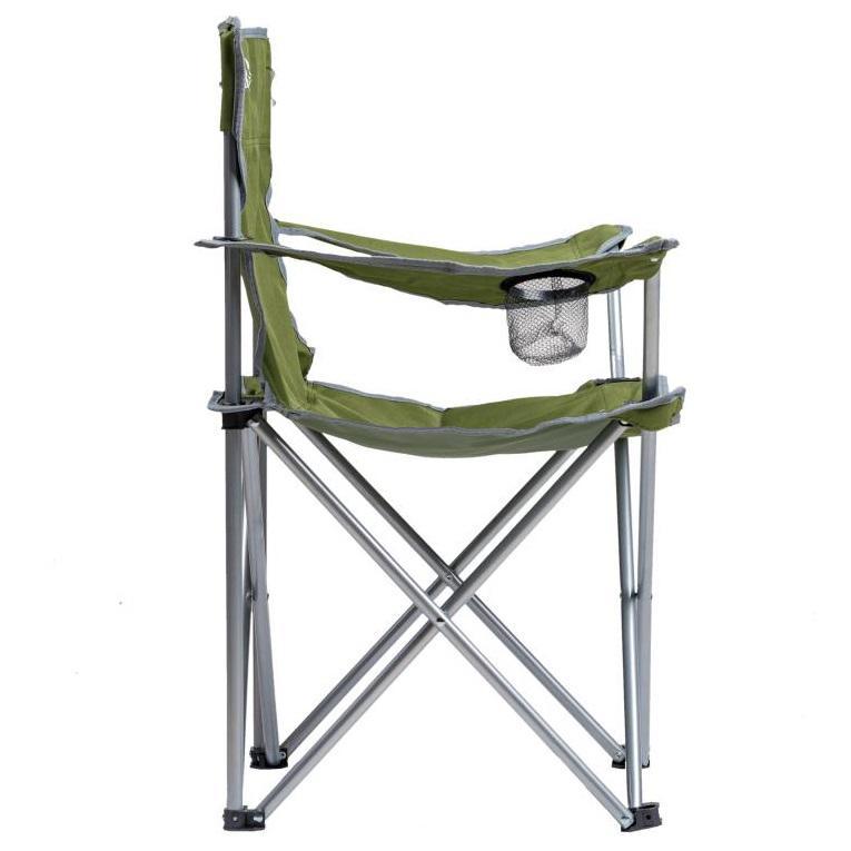 Характеристики: тканина крісла:поліестер 600D; Чохол тканинна :210D; колір тканина:зелений,сірий каркас сірий; рама: сталева труба 16 мм, порошкове фарбування; розмір в розкладеному вигляді:80х47х80 см ВхГхШ; розмір сидіння: 40х48 см ГхШ; висота сидіння від підлоги: 39 см; висота спинки від сидіння: 44 см; вага: 2,3 кг; навантаження :90 кг.