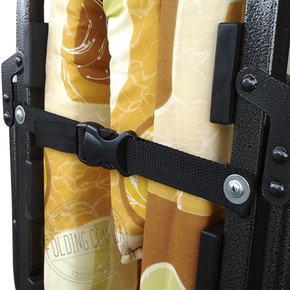 Для фіксації розкладачки у складеному вигляді використовуються чотири ремені з карабінами.