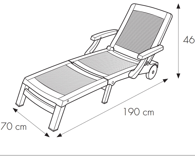 Сетчатая структура поверхности сидения и спинки лежака создаст естественную вентиляцию, что очень приятно в жаркую погоду, а большие колеса на задних ножках помогут без проблем перевезти лежак на нужное место.